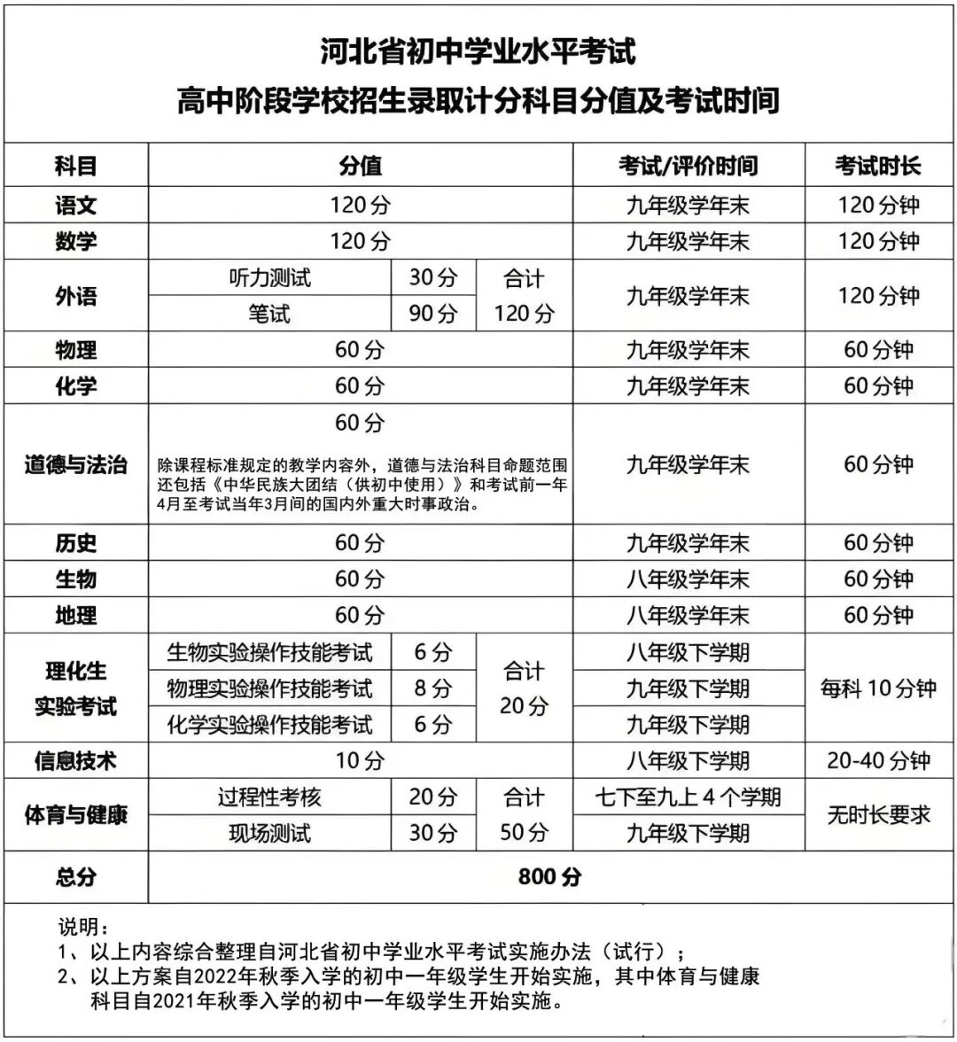 按照“学完即考”原则,地理和生物学笔试、生物学实验操作技能考试、信息科技考试安排在八年级,其他科目于初三统一安排。