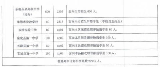 2023年承德市普通高中学校招生计划表