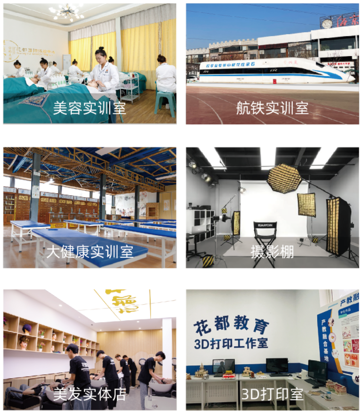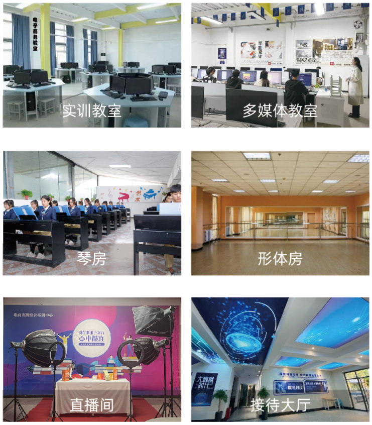 学校每年投入费用对于环境升级、教学软硬件建设,为师生创造书香校园。学校内部拥有高端产教融合实训基地,新媒体运营与直播实训室、影视传媒实训室、3D打印室、动漫制作实训室、软件开发实训室、绘画室、舞蹈室、钢琴房、高铁/航空模拟仓等理实一体实训教室。配有体育活动运动场、室内室外篮球场、羽毛球和乒乓球场地及拳击室;生活设施有餐饮中心、公共浴室、饮水房、菜鸟驿站等。