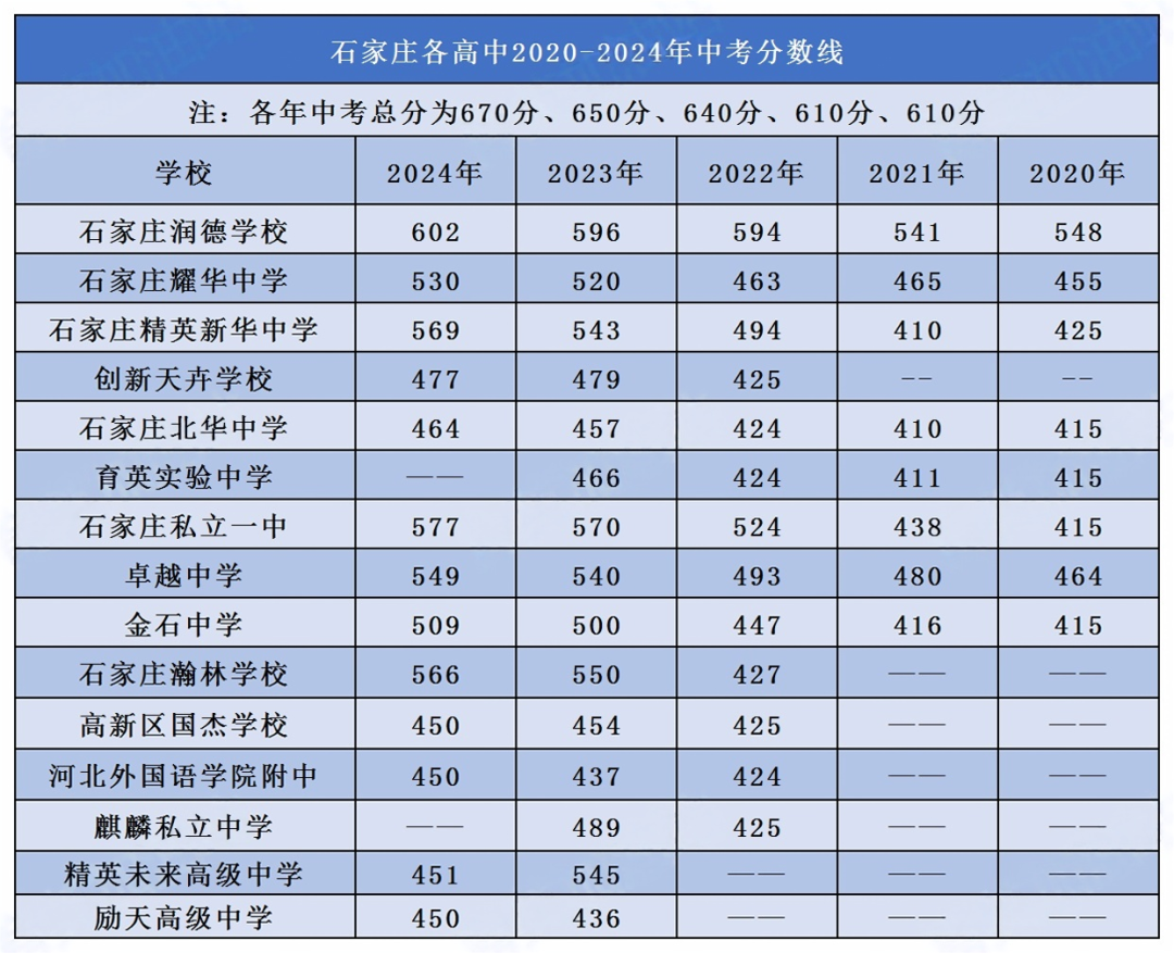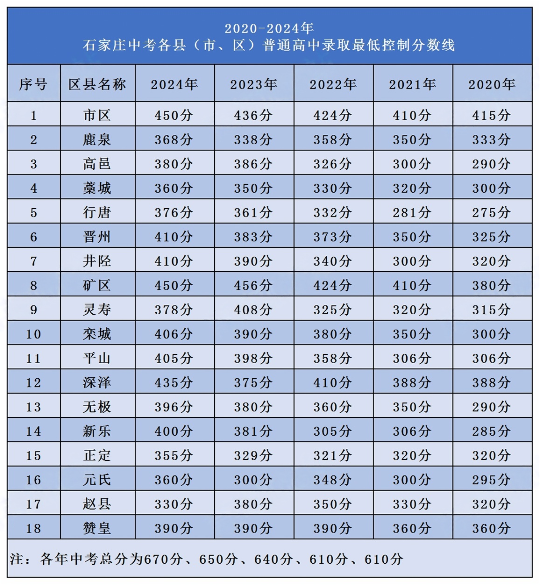 2025中考丨2020-2024石家庄近五年中考各高中分数线汇总
