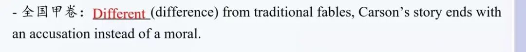 5. 此处需用形容词作状语,构成 “Different from...”(与…… 不同)这一固定搭配,用于引出对比对象。“difference” 是名词(差异、不同)。