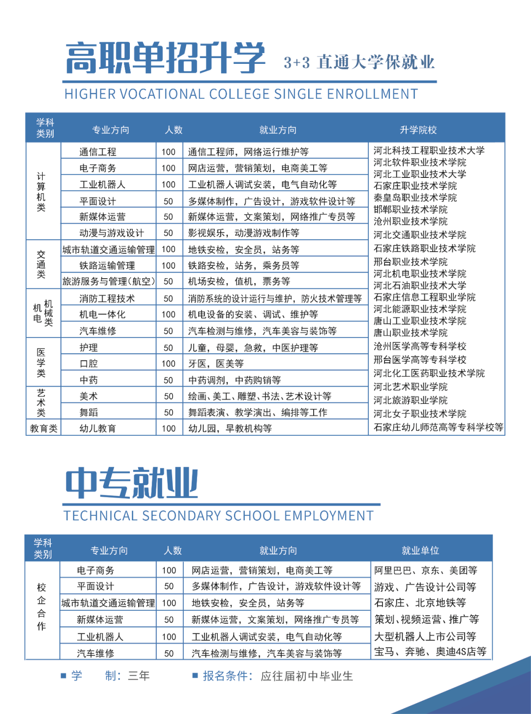 二、航空、铁路、幼儿教育、艺术特长等专业需要参加我校组织的自主招生及面试。