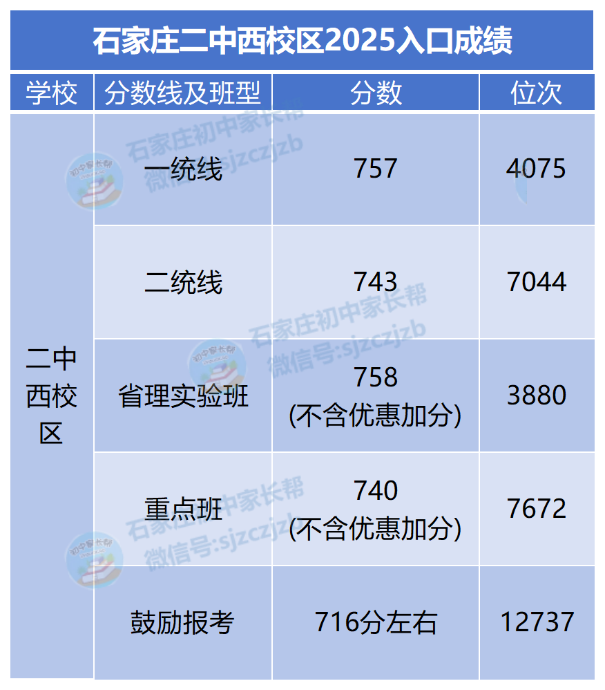 石家庄二中教育集团各学校2025级入口成绩汇总!