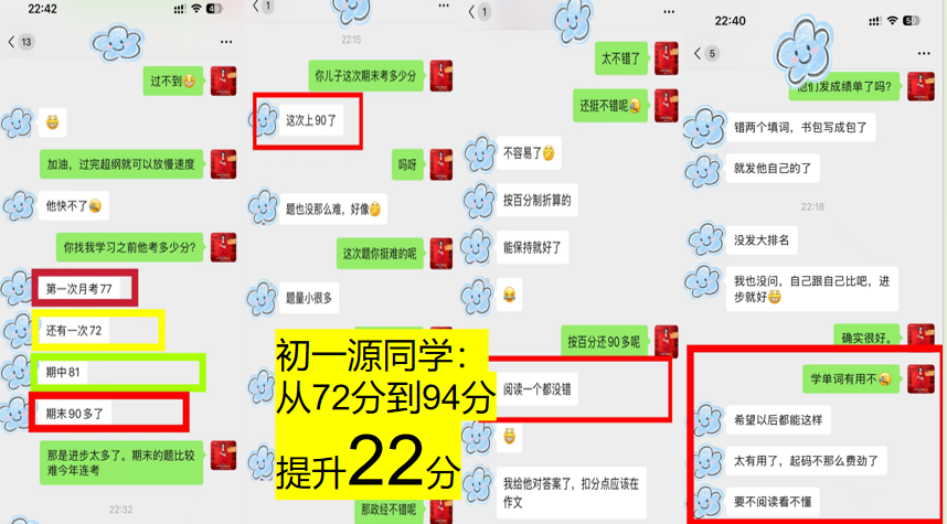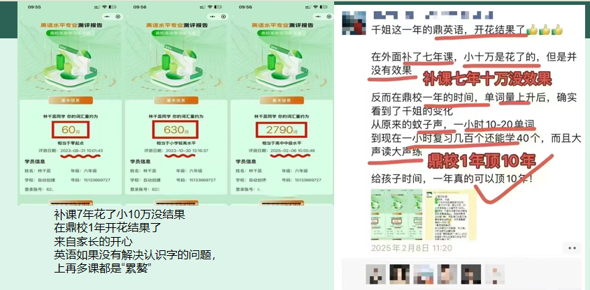 学生从72分提至94分,源于专属提分路径的精准训练,家长激动反馈:“补课7年无果,鼎校1年见效”