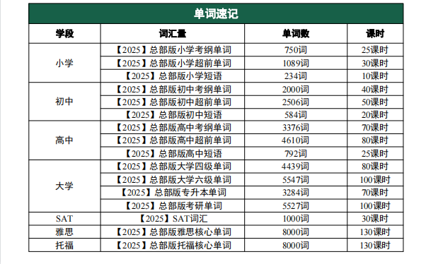【鼎校】攻克单词能力超强:25 小时掌握小学全部单词,40 小时搞定初中单词,60 小时拿下高中单词。