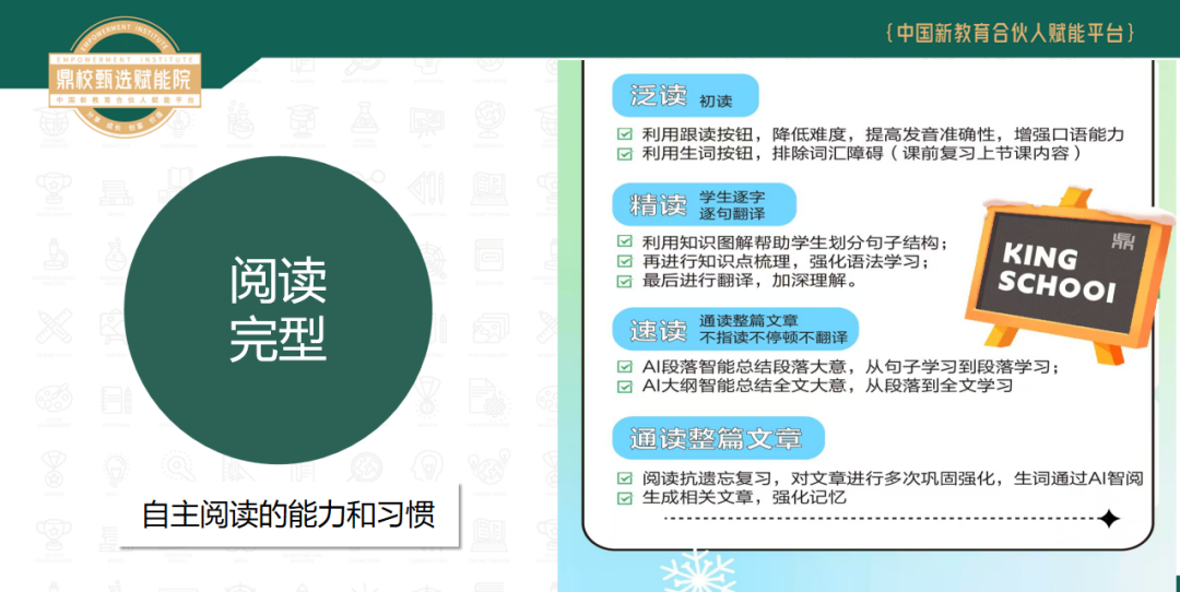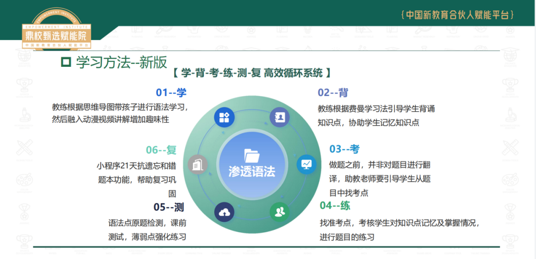 【鼎校】平台通过专属训练场,实现专注听、大胆说、跟读、记忆,结合科学防遗忘机制,用更少时间高效掌握英语。
