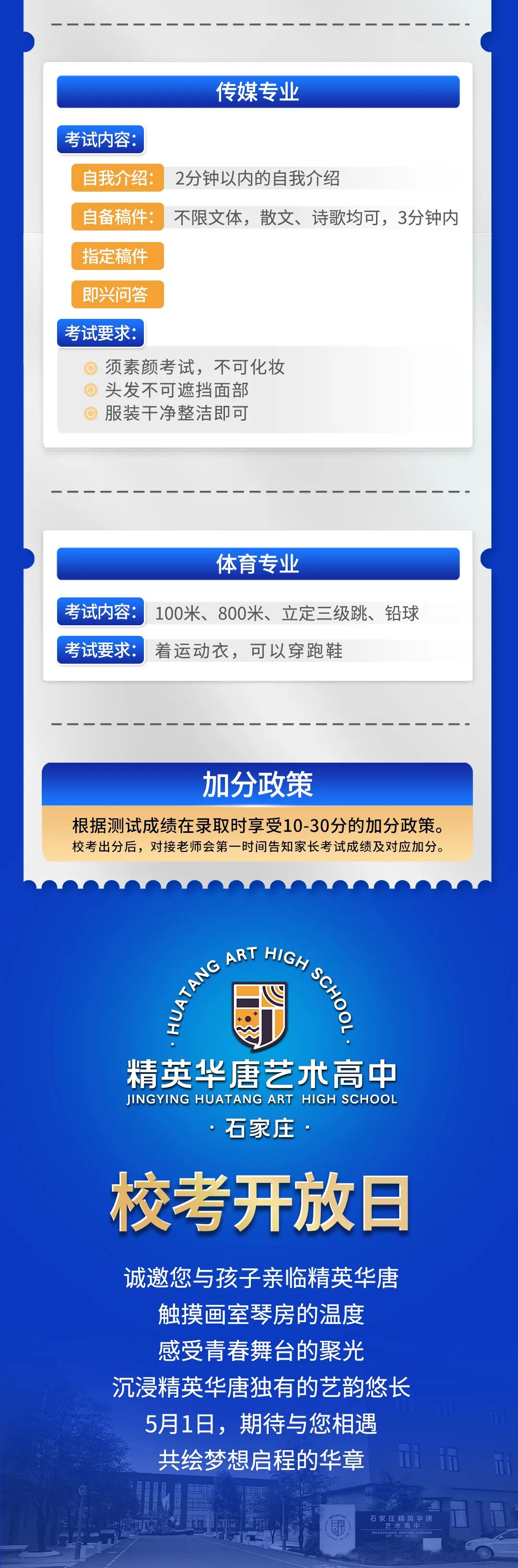 石家庄精英华唐艺术高中专业校考五一开考&开放日等你来
