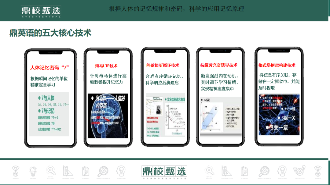 结合我们的五大核心技术,孩子们训练完,他就形成了短期记忆,之后通过抗遗忘闭环,我们又为孩子们,为用户设计了一个抗遗忘的训练系统,21天的10次抗遗忘复习+九宫格推进式复习,能够让孩子们从短期记忆到永久记忆的过渡。