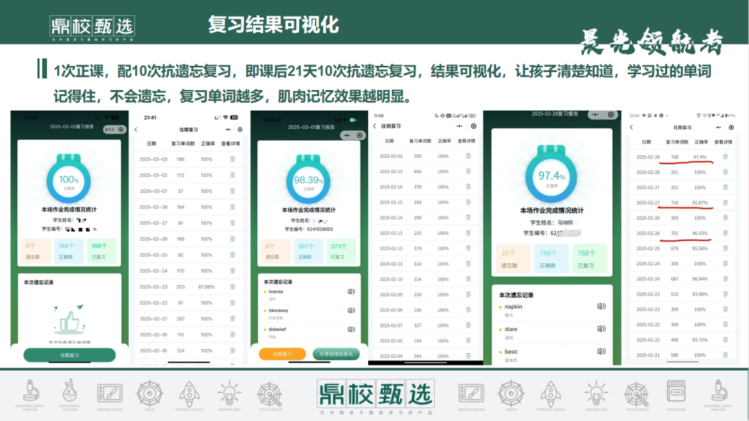 鼎校训练在做课后的首次21天10次抗遗忘复习。