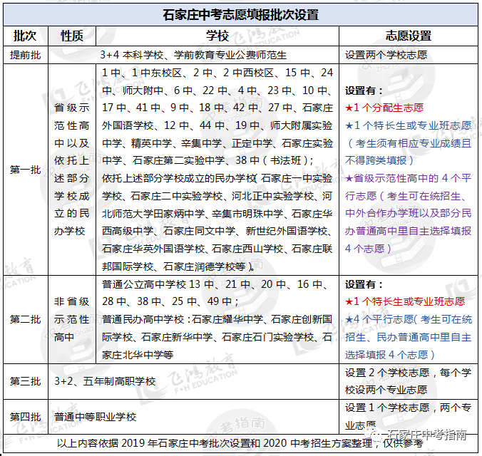 下表为根据去年的中考录取工作实施意见和今年的中招工作实施方案汇总的——石家庄中考志愿填报批次设置,家长可先做参考。