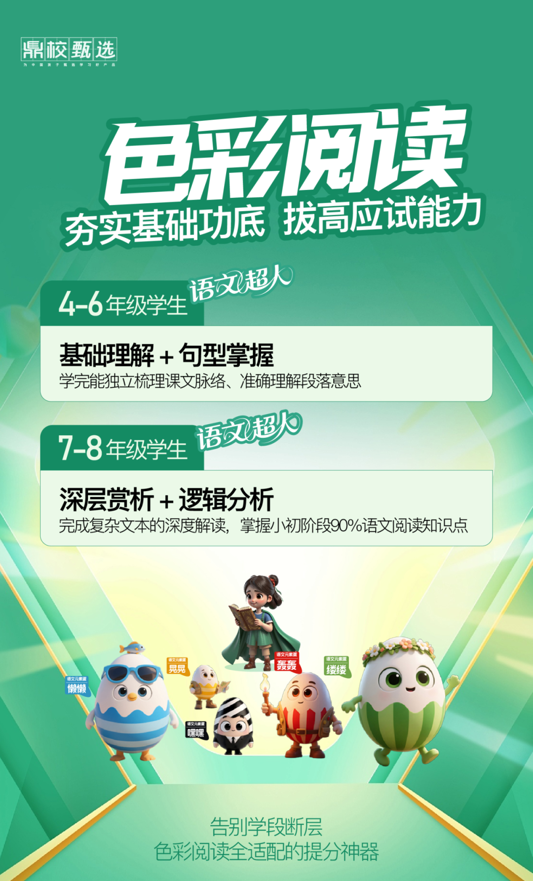 选择语文超人色彩阅读,就是给孩子一把解锁阅读乐趣的钥匙,让他们在文字世界里找到自信,在成绩赛道上实现弯道超车,真正做到读懂文章、答对题目、爱上语文!