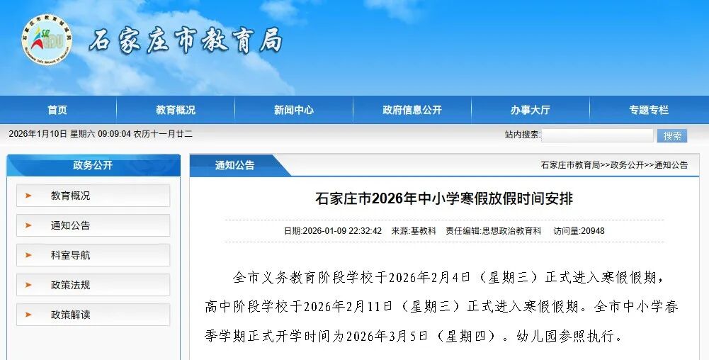 放假安排 | 2026年石家庄中小学寒假安排