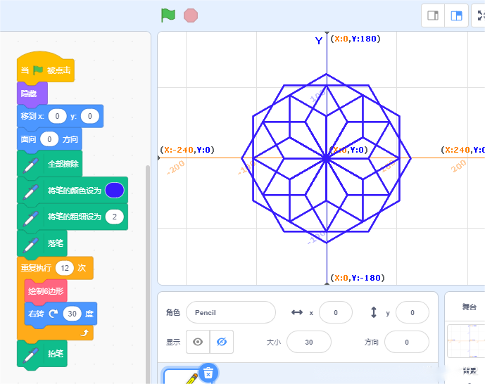 用坐标系控制角色精准移动,直角坐标系不再是难题;绘制图案中学习正多边形的内角关系;四舍五入、随机数、鸡兔同笼问题等,数学问题轻松解决。