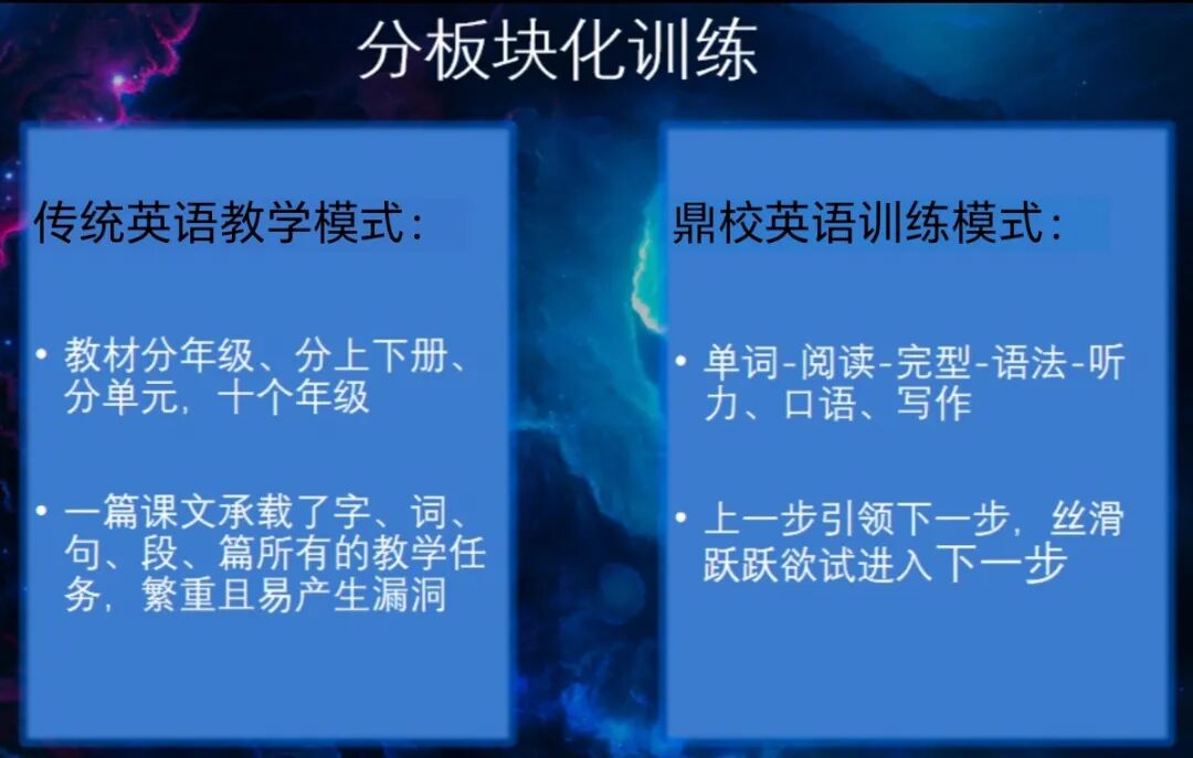 鼎校英语的解决方案是:分模块阶梯式训练。