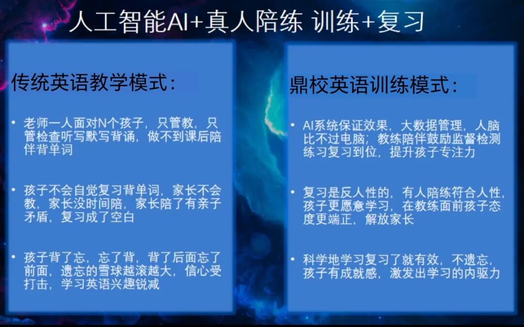 最后,再和大家介绍一下,鼎校英语上课形式的不同。我们是线上一对一,但又不同于传统网课,鼎校英语采用AI+真人伴学,让学习有温度、有效果!