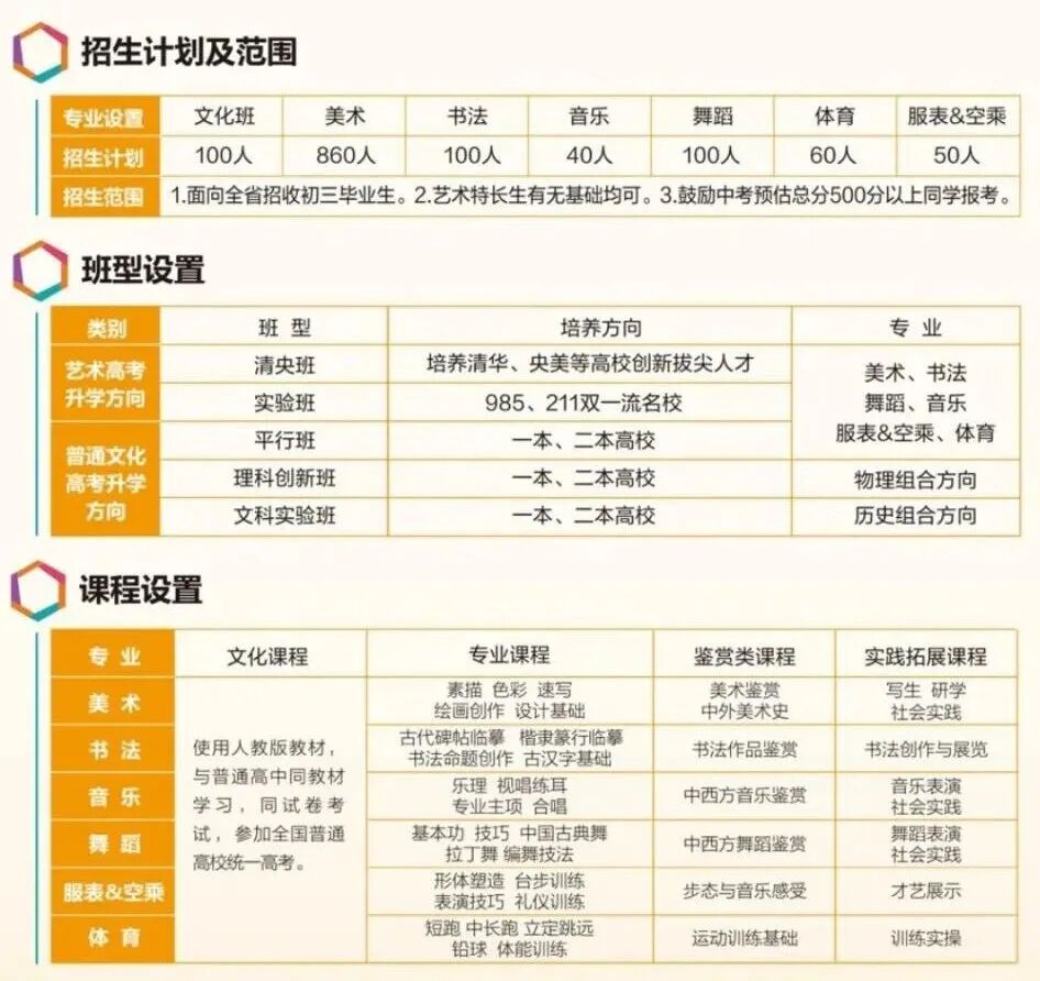 音乐专业分声乐和器乐两大方向,拥有一支专业精湛、年富力强的师资团队,多名学子联考成绩在全省名列前茅,更有考入中央音乐学院的学子。