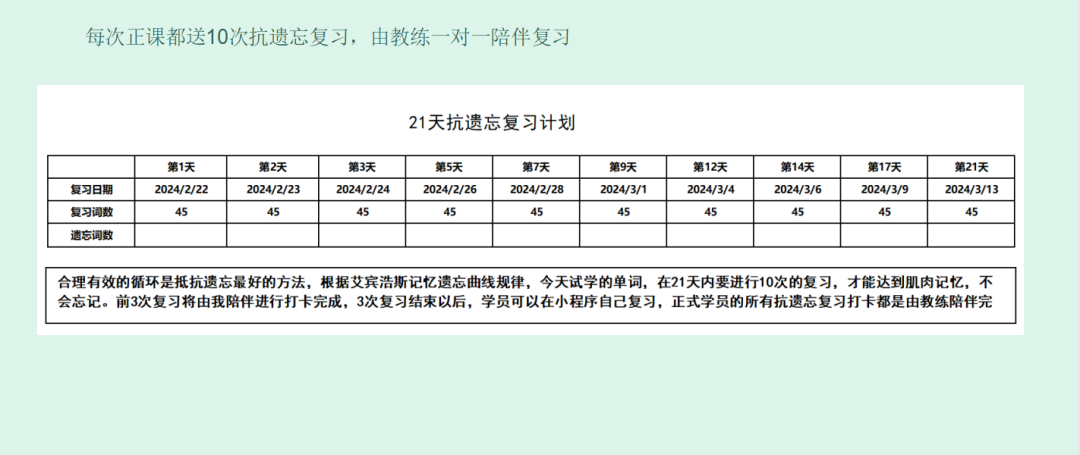 我们的专业学习教练会为孩子量身规划21天科学抗遗忘复习方案,全程精准把控复习节奏,循序渐进地巩固单词记忆,让孩子牢牢吃透每一个单词,彻底告别背了就忘的困境。