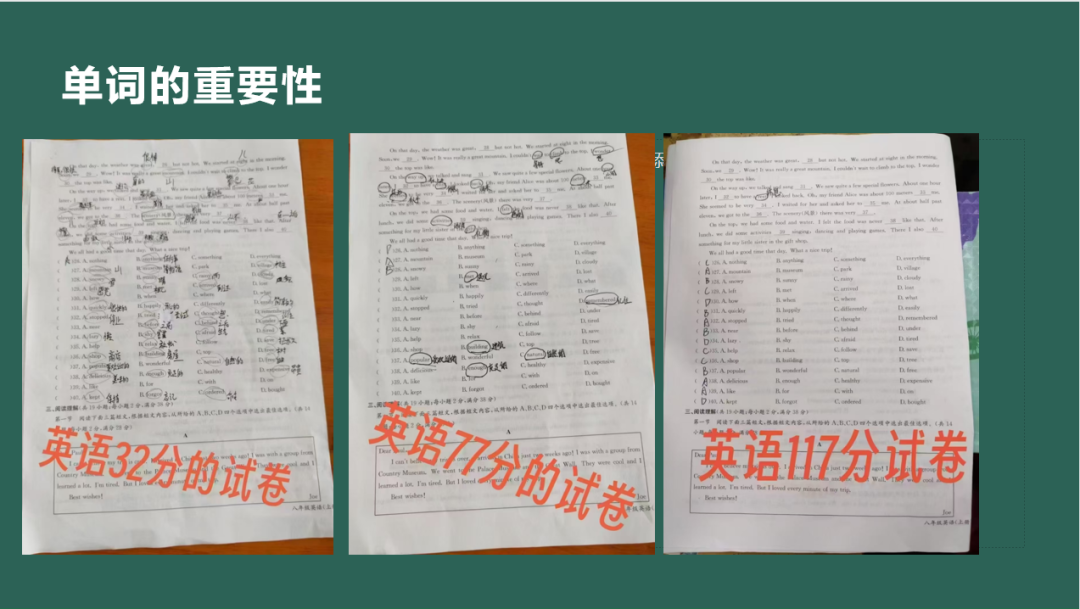 英语32分的试卷,只能记住日常高频词,如hello,food,go,big,且多为单义词或最基础的含义。试卷中重要的单词都是不认识的,非常影响对全文的理解。