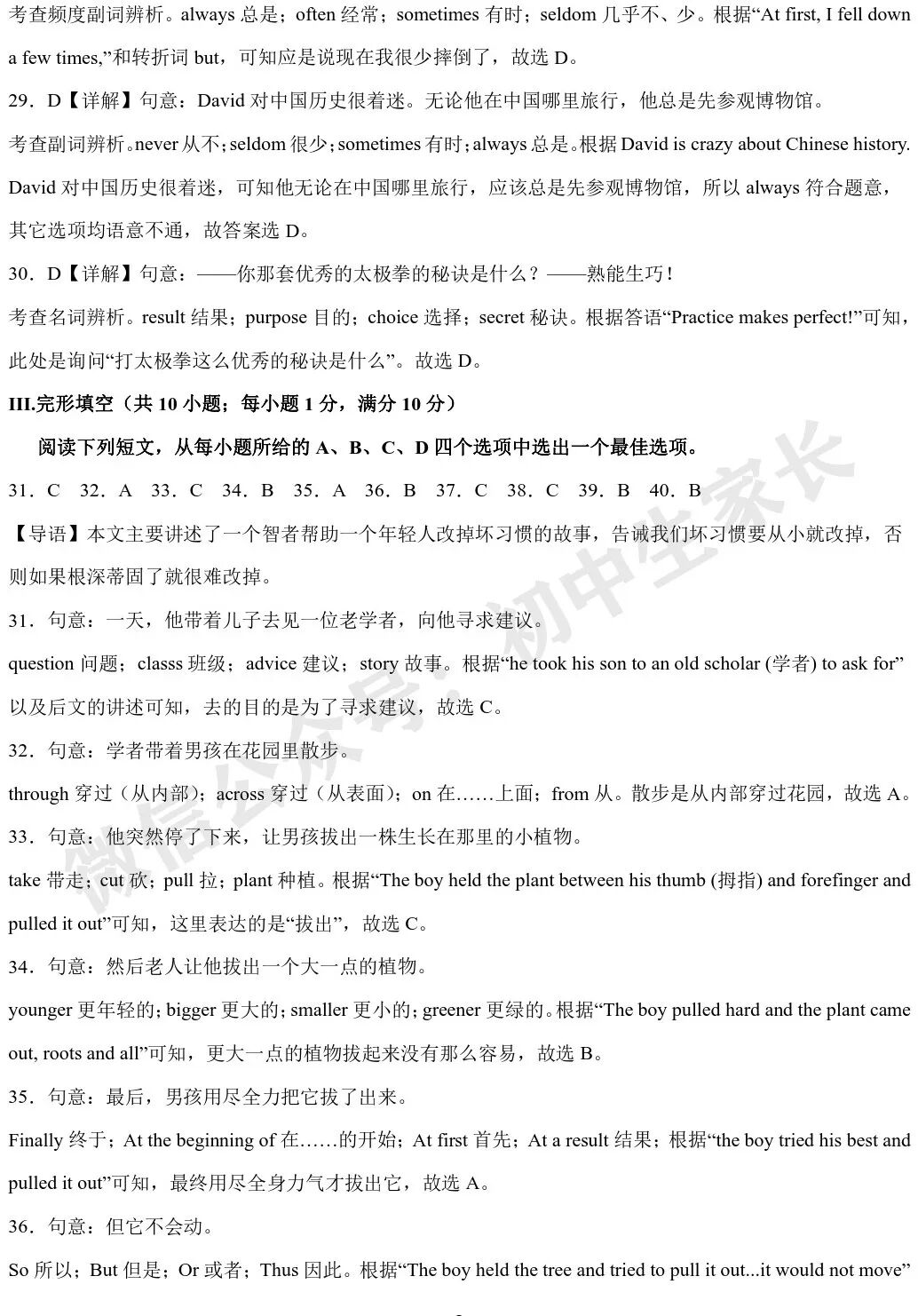 “So it is with bad habits,” said the scholar. “When ____38____ are young, it is easy to pull them out. But when they grow bigger, they cannot be pulled out easily.”