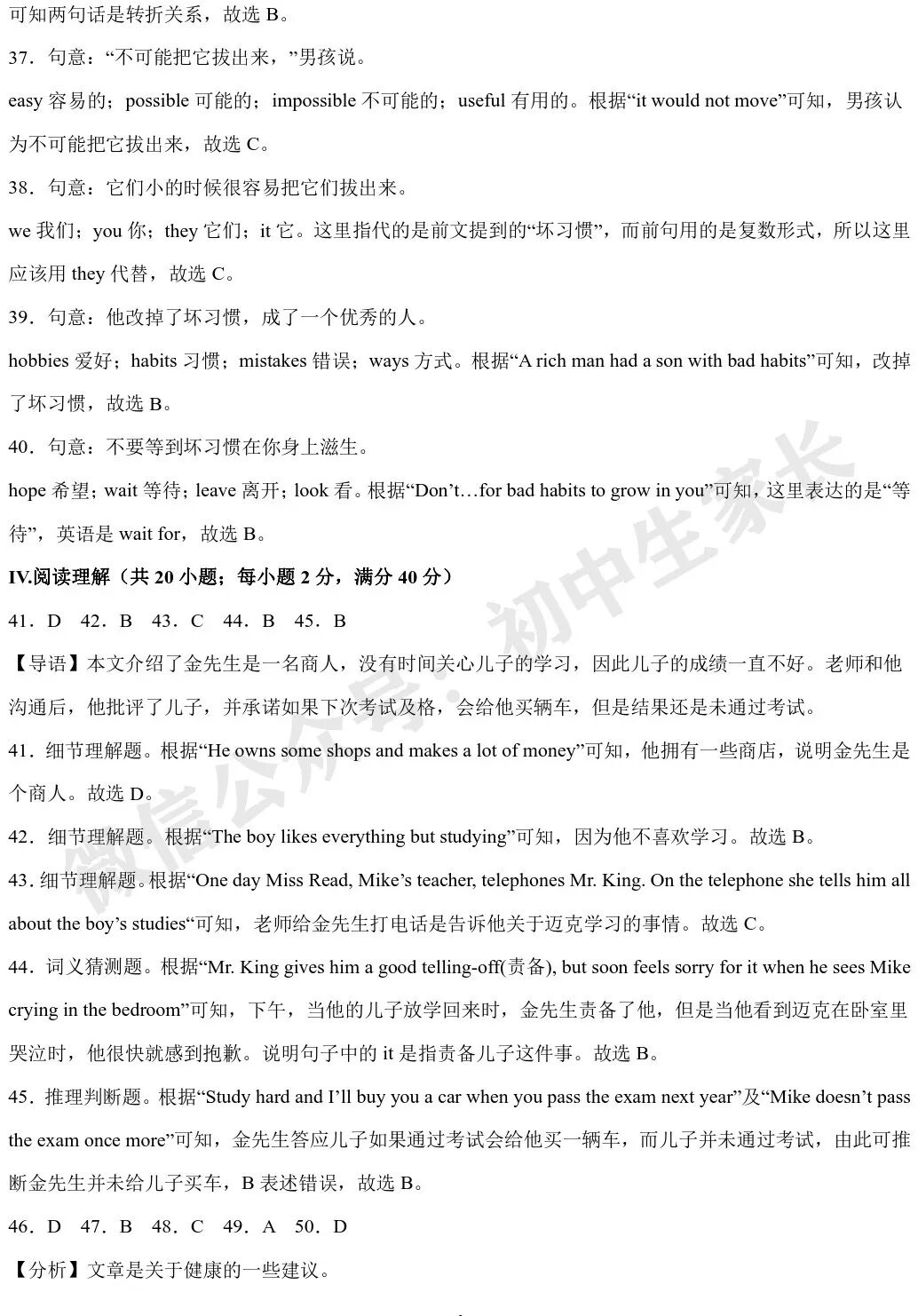 The lesson with the old man changed the boy’s life. He gave up his bad ____39____ and became an excellent man.