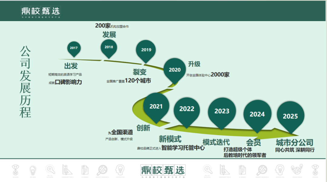 业务范围:通过人工智能加教育的方法和技术,打造产品智能化快速交付系统,提供全场景全龄段的学习解决方案,包括学科类课程如“英语超人”“数学超人”,能力培养类课程如“注意力超人”等,以及升学与生涯规划服务等,形成教育产品生态圈。其核心产品“鼎英语”通过人工智能AI硬软件销售+伴学服务,帮助小学高年级、初高中生、大学生及英语考试人群实现短期高效提分。