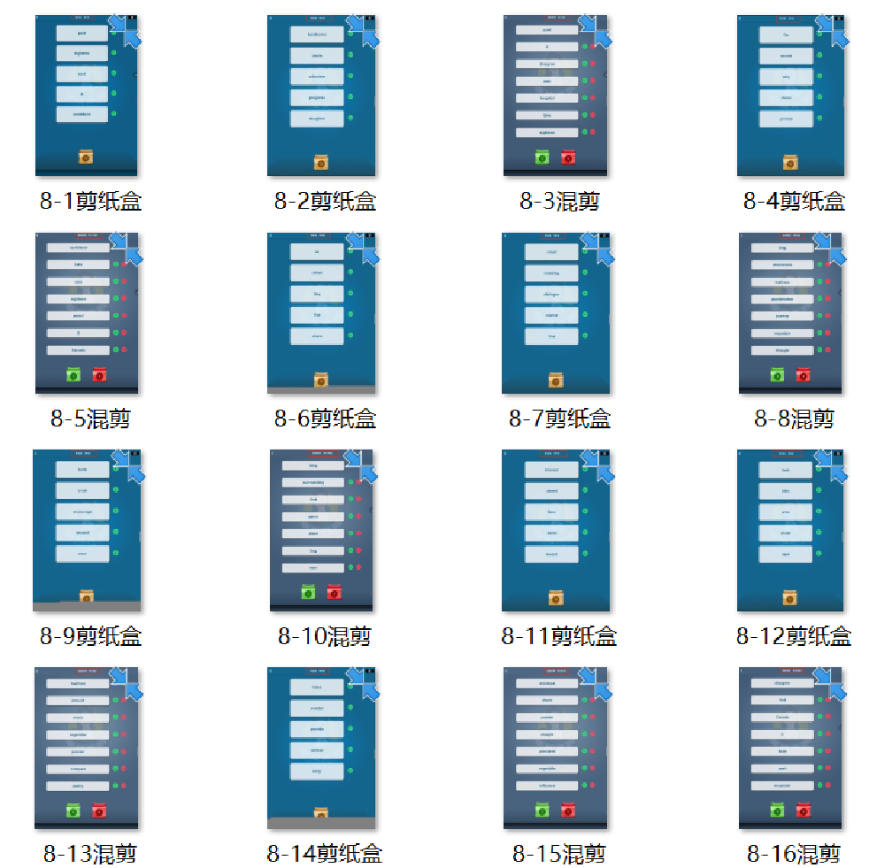 然后再来学第七组,然后学第八组,然后七八两组混合,再学第九组,七八九组混合,这是第三关。