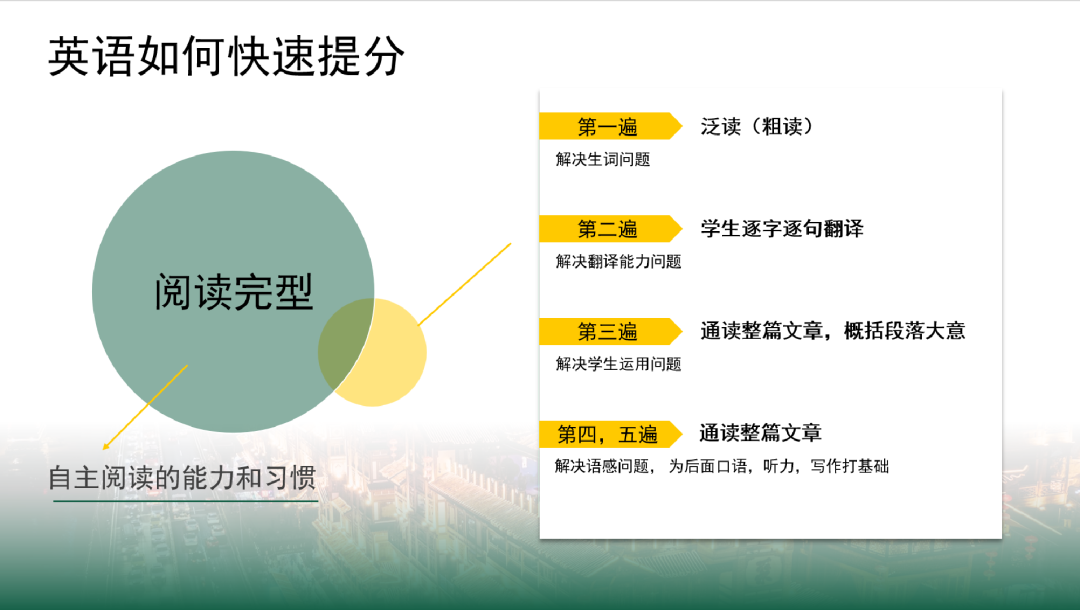 我们用五步递归研读法,一篇文章做5遍,每一遍去解决学生不同的问题。