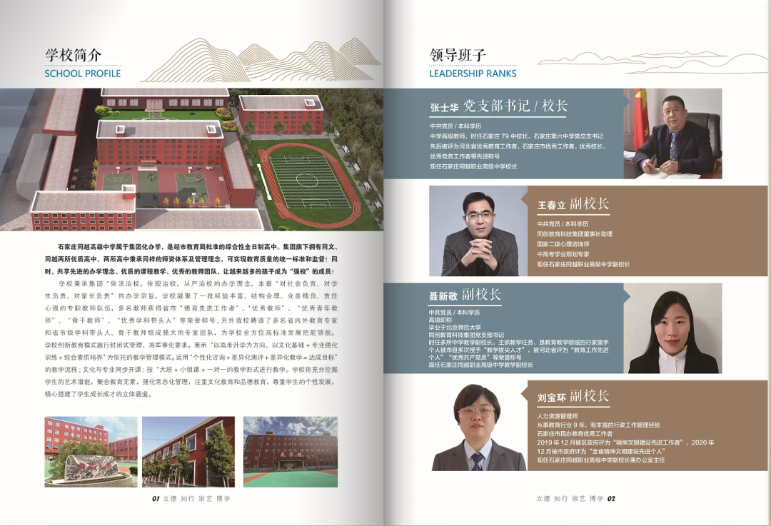石家庄同越高级中学属于集团化办学,准军事化寄宿制高中。集团旗下拥有23中同文、同越两所优质高中,同越高中依托于23中同文应运而生。