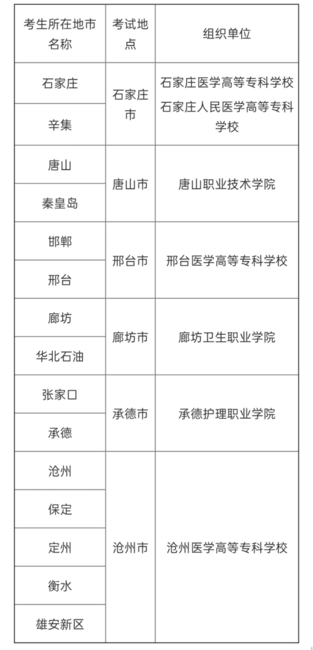报考(G考试7类)生源地(考生所在地)为承德市、张家口市的考生,考试地点在承德护理职业学院