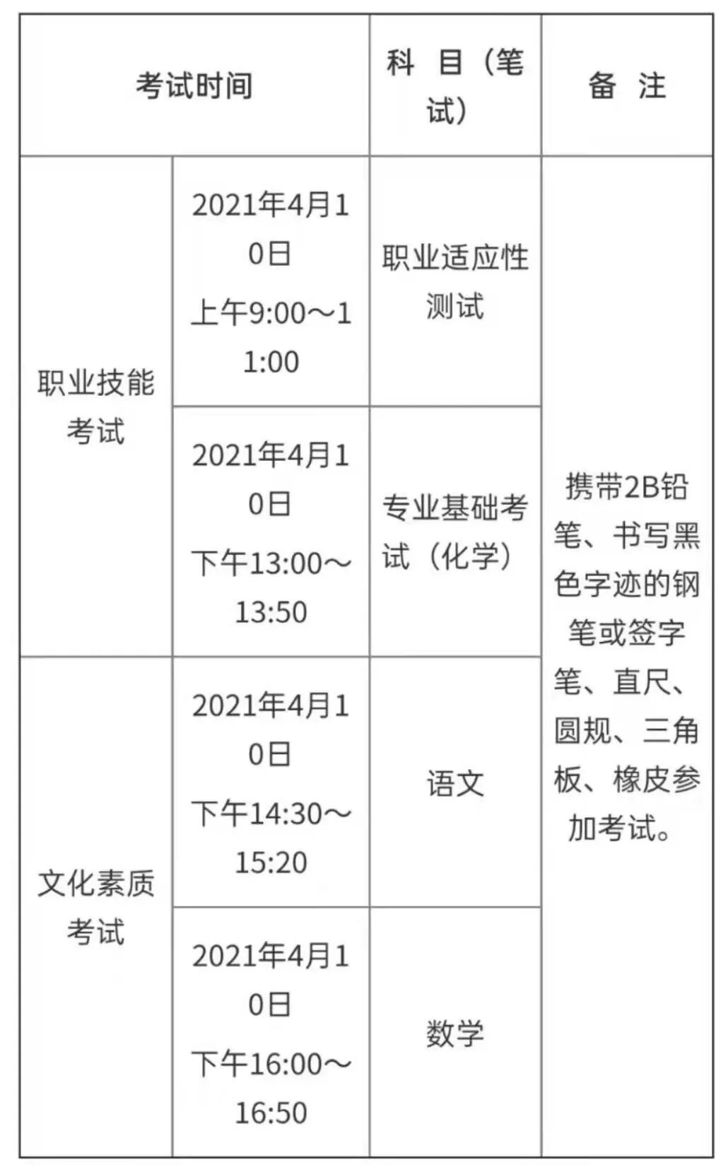 考试时间为4月10日