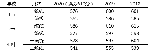 从分数线来看,二中、一中、43中按照降序排列。从一统线来看,三所学校中一中和43中的分数差距并不算明显。43中的一统二统线差距较大,学生整体水平可能存在一定“层次”。