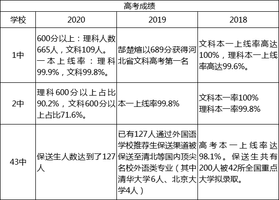 石家庄1中、2中、43中对比分析!