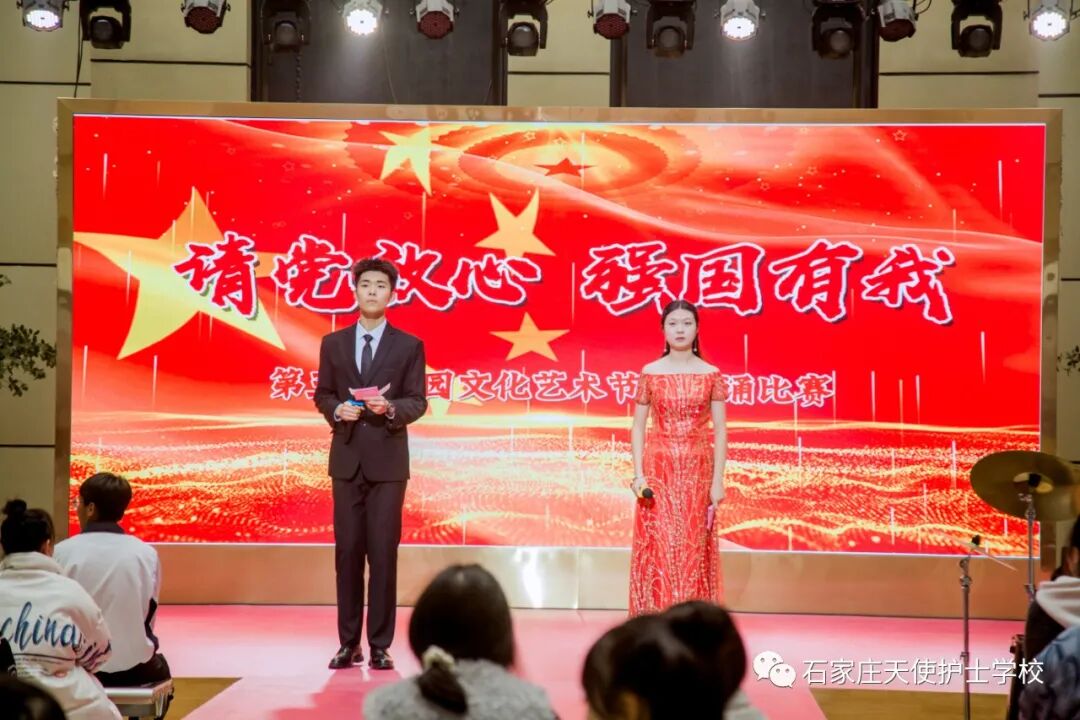 石家庄天使护士学校第五届校园文化艺术节——“请党放心,强国有我”诗朗诵大赛与2021年11月6日下午在教学楼大厅拉开了序幕。