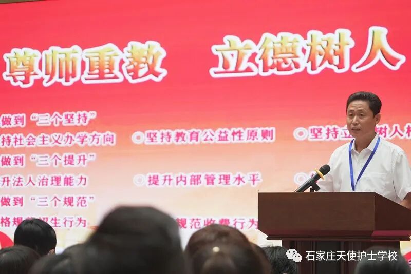 九月是一个收获的季节,九月硕果飘香,九月祝福飞扬。在秋云荡漾的日子里,石家庄天使护士学校迎来了第37个教师节。值此之际,学校组织了以“尊师重教,立德树人”为主题的庆祝教师节活动。9月10日上午,全校教职工齐聚一堂共同庆祝属于自己的节日。