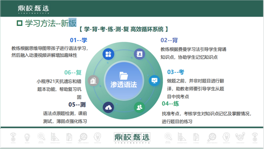 综上,鼎英语采用“单词+语法+阅读”的知识架构,带领孩子们进行英语提分训练,从而达到让学生一分钟记住一个单词,三天记住三年的单词,1-3个月可以快速提分20-60分的目标。