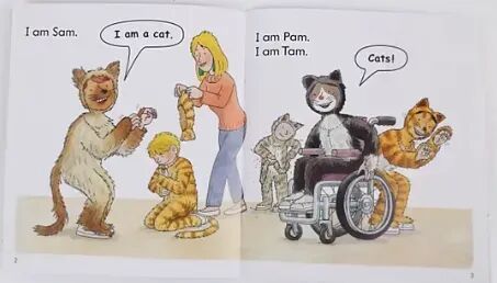 比如说,孩子学了“c-a-t→cat”,你就让他指着单词,一边拼一边认图,看着图片知道是猫。