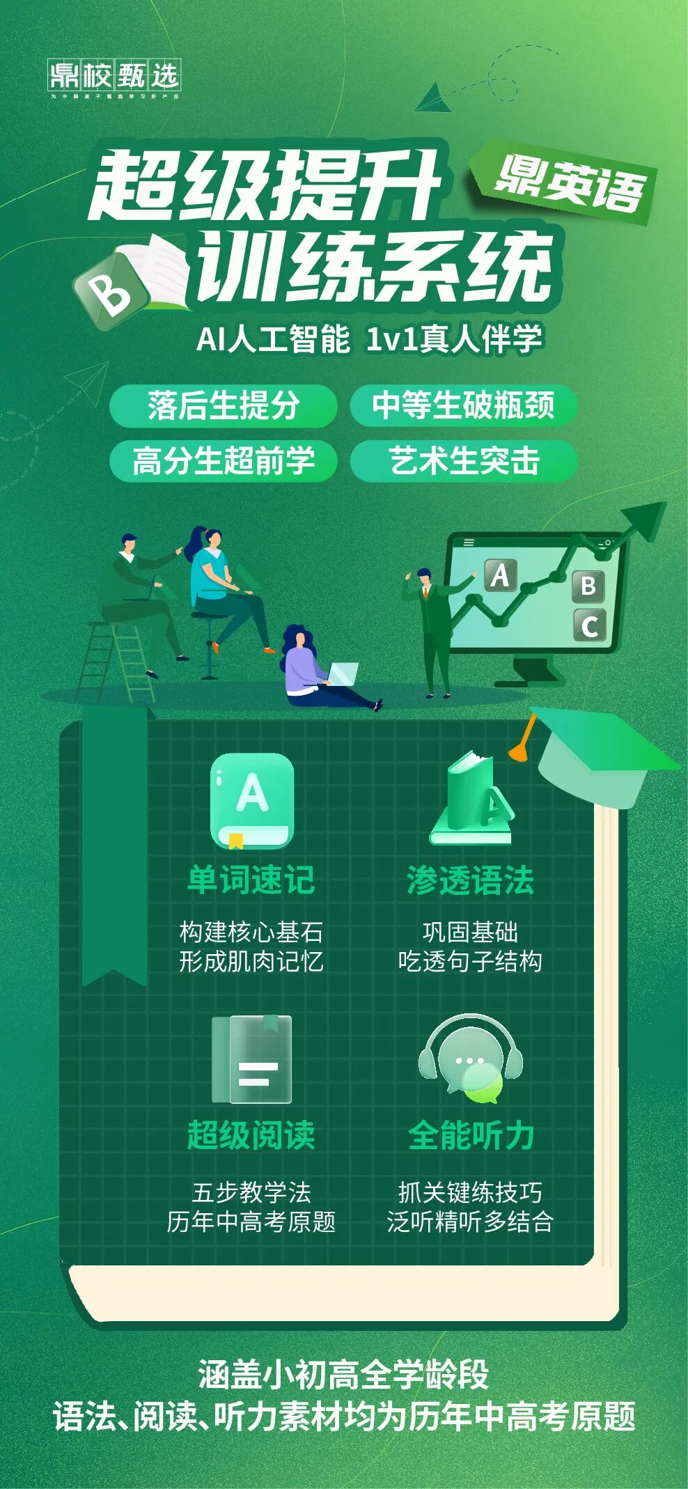 如果你的孩子也面临英语成绩提升的需求、单词记忆困难、自律性差等问题,不妨试试鼎校智能英语+极致赋能的真人学搭子学习方式。