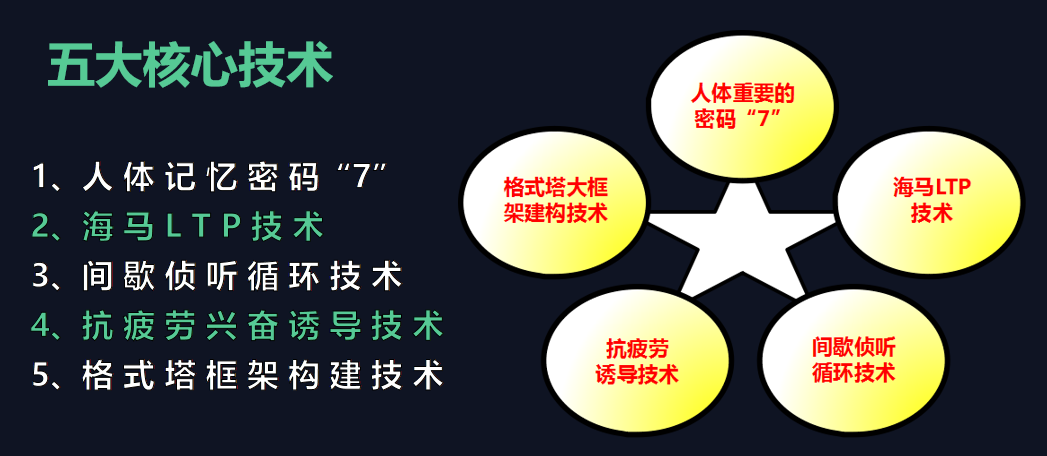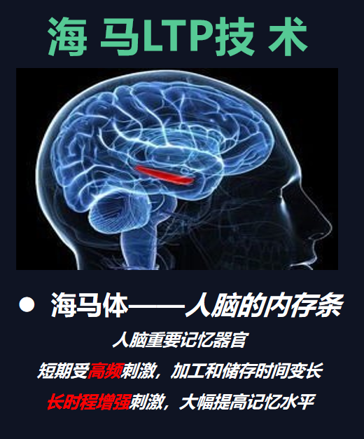 海马体是人脑短期记忆的一个重要器官,通过高频率高强度的去刺激海马体,就能将大量的信息识记完成,形成短暂记忆,解决了孩子能够记得住的问题