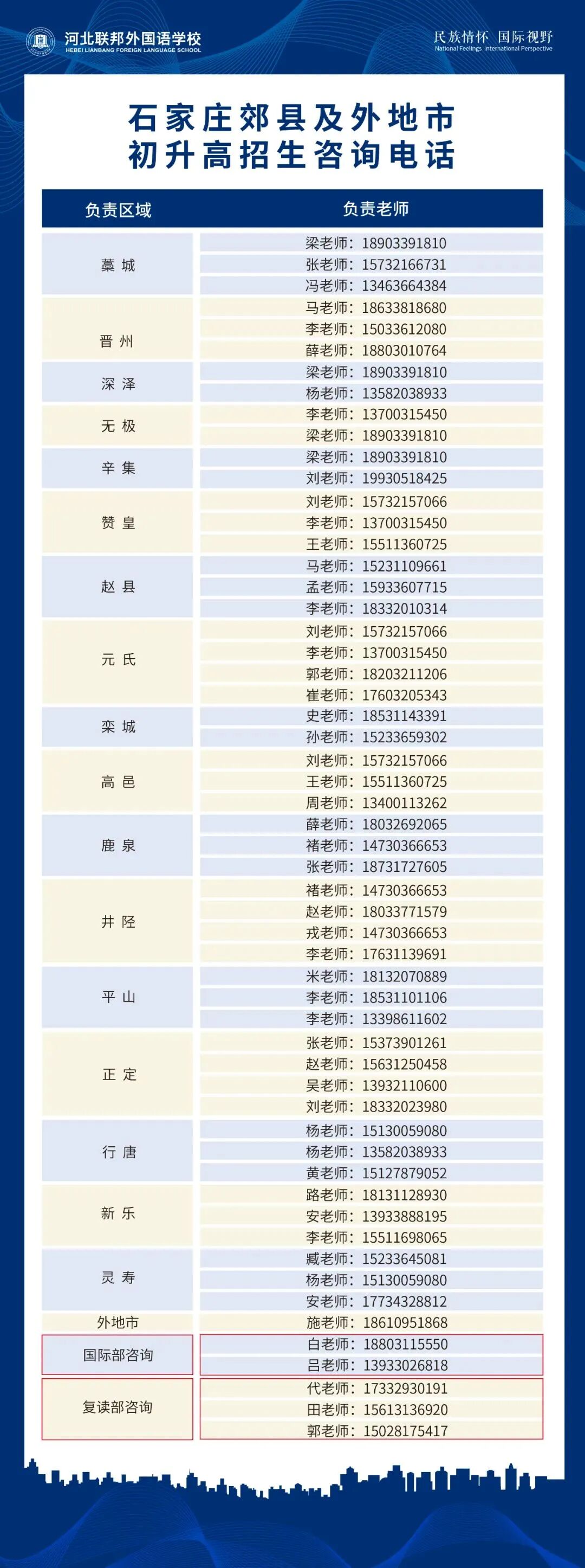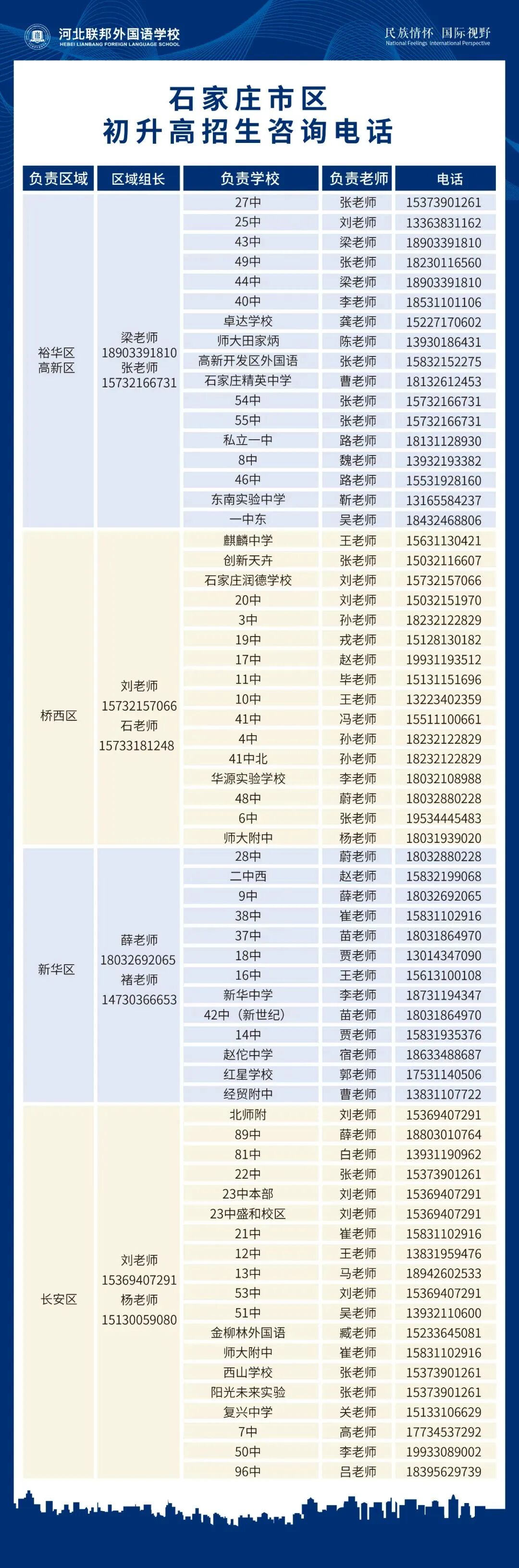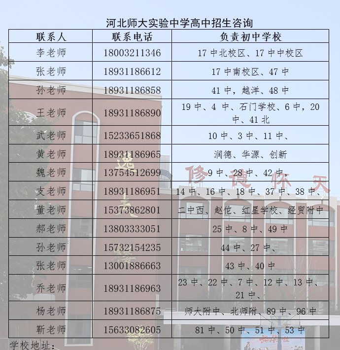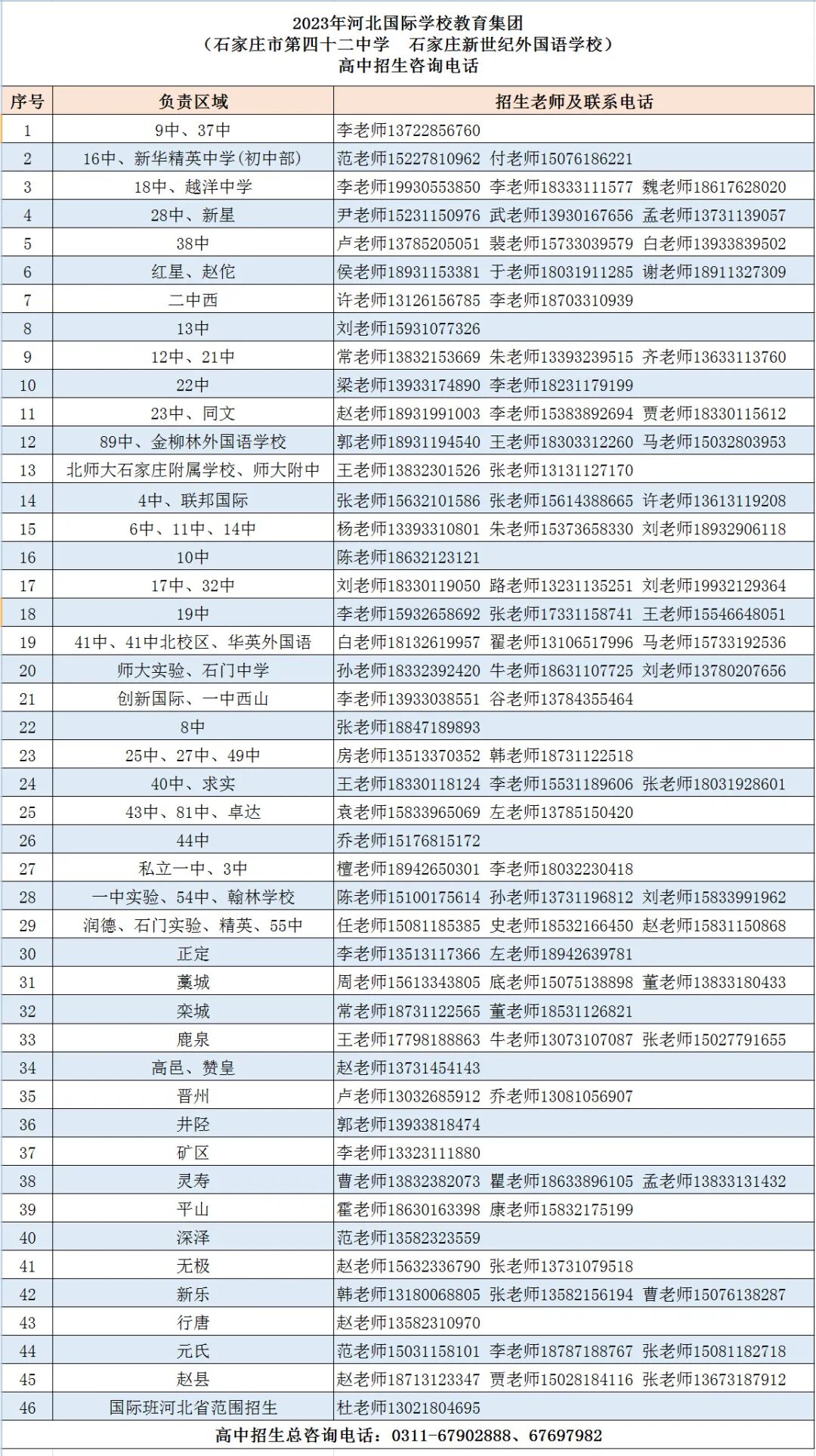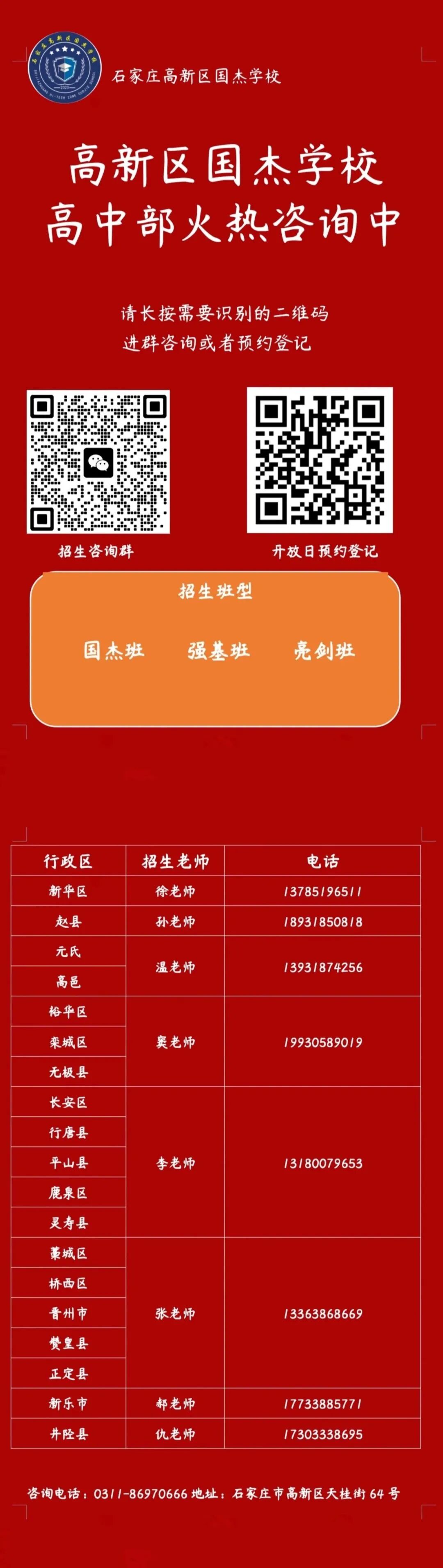 2023年高一招收新生305人,文化生131人,体育10人,美术14人,书法生150人(市内五区145人,含自主招生15人;藁城、鹿泉、栾城新三区5人),欢迎广大考生报考。