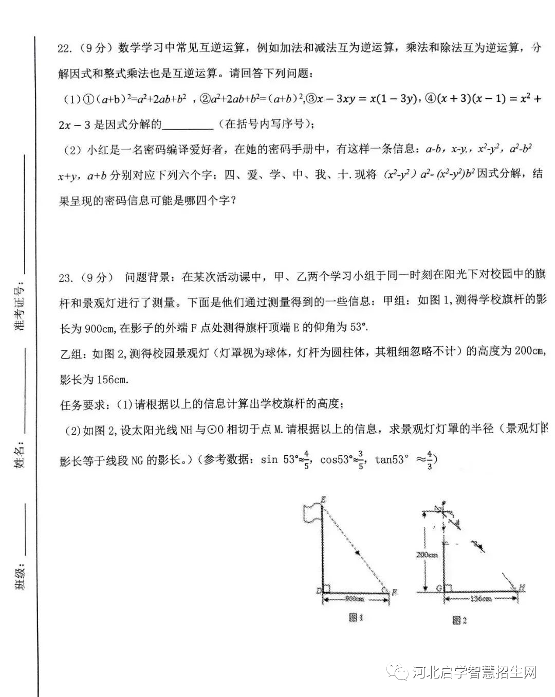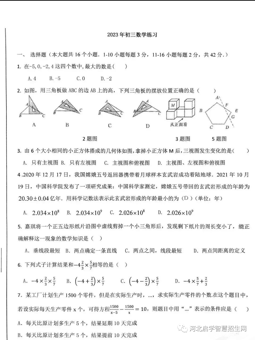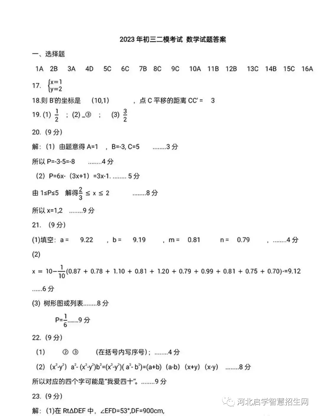 【中考模拟卷】2023石家庄40中中考数学模拟试卷+答案