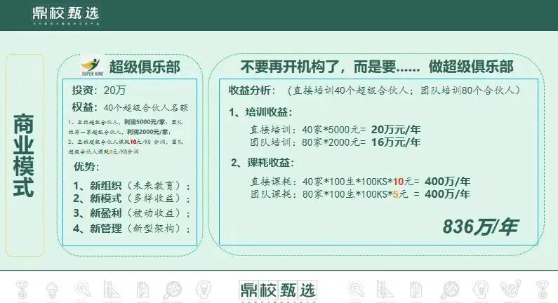 - 可持续:通过学生转介绍和合伙人续费,实现持续盈利