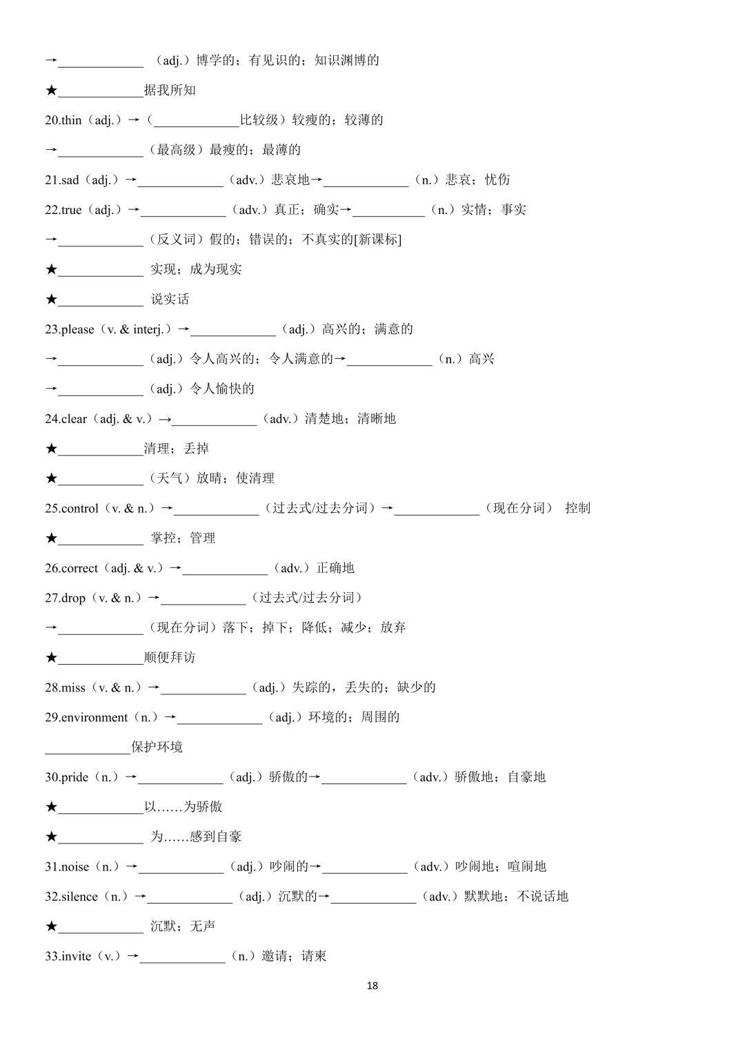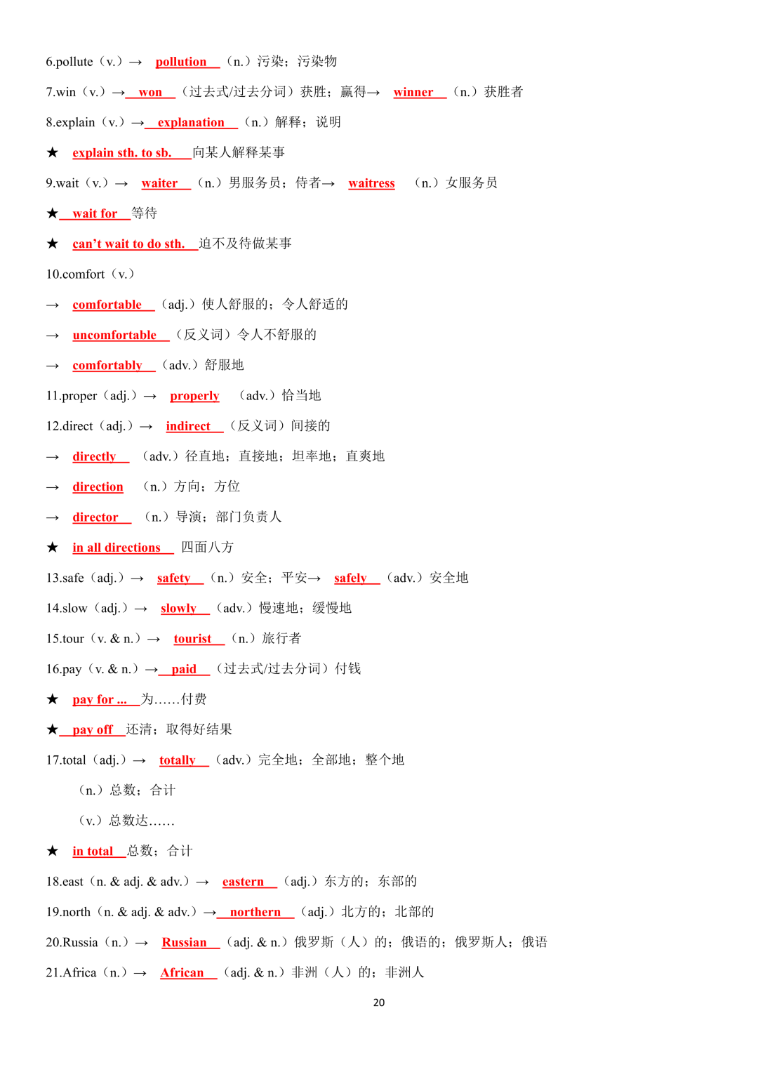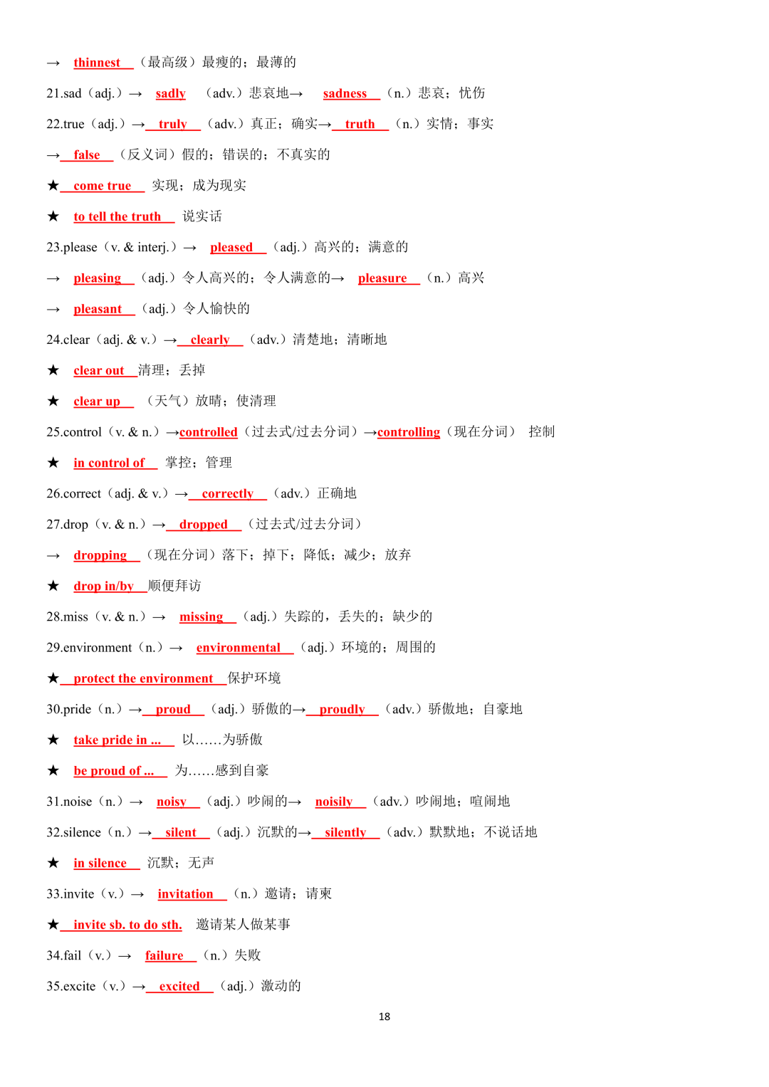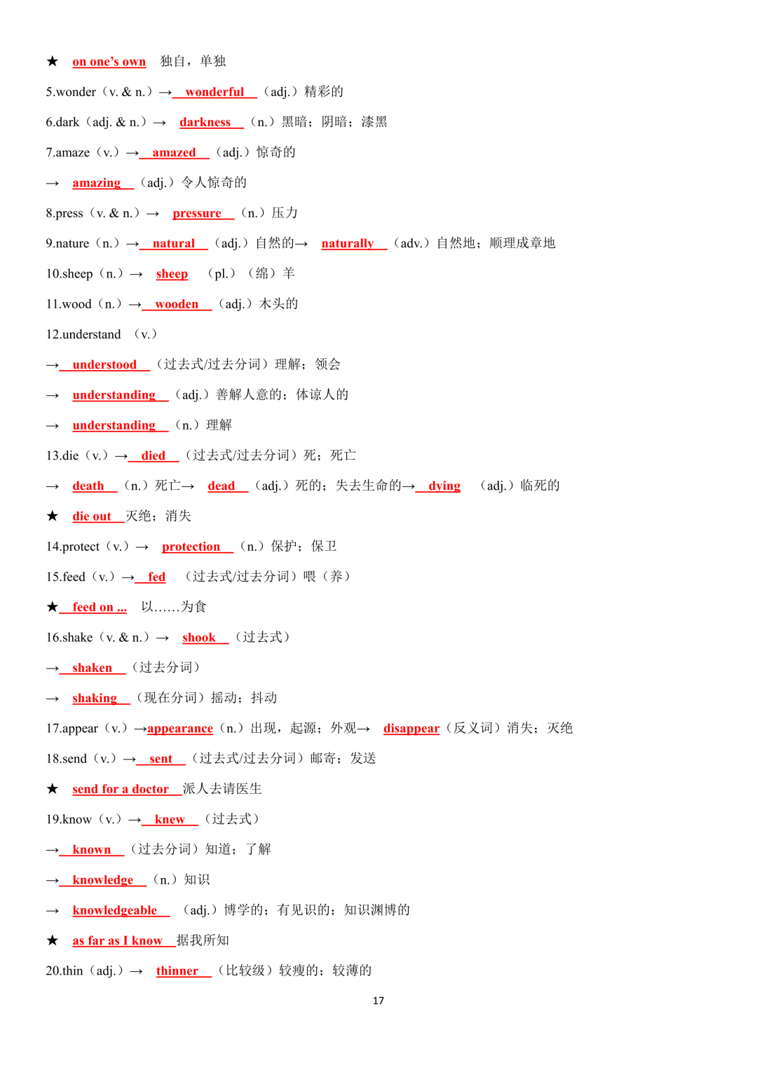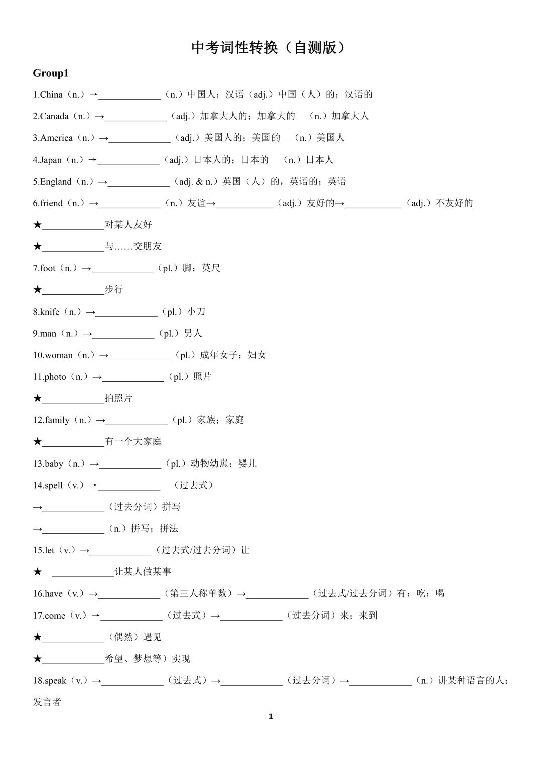 词性转换自测默写一共28页,下面是背诵答案
