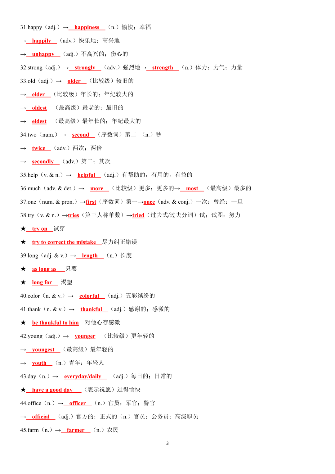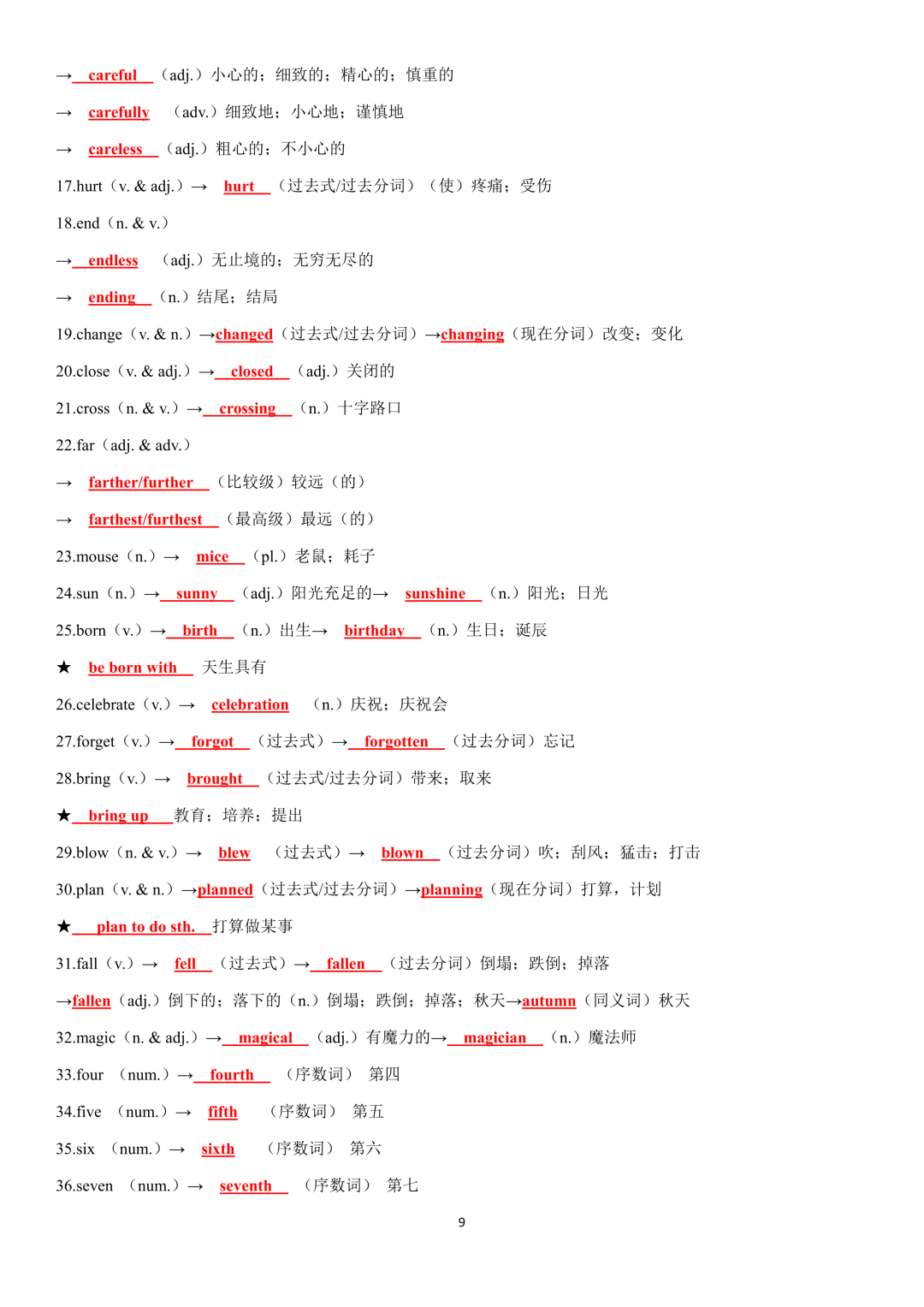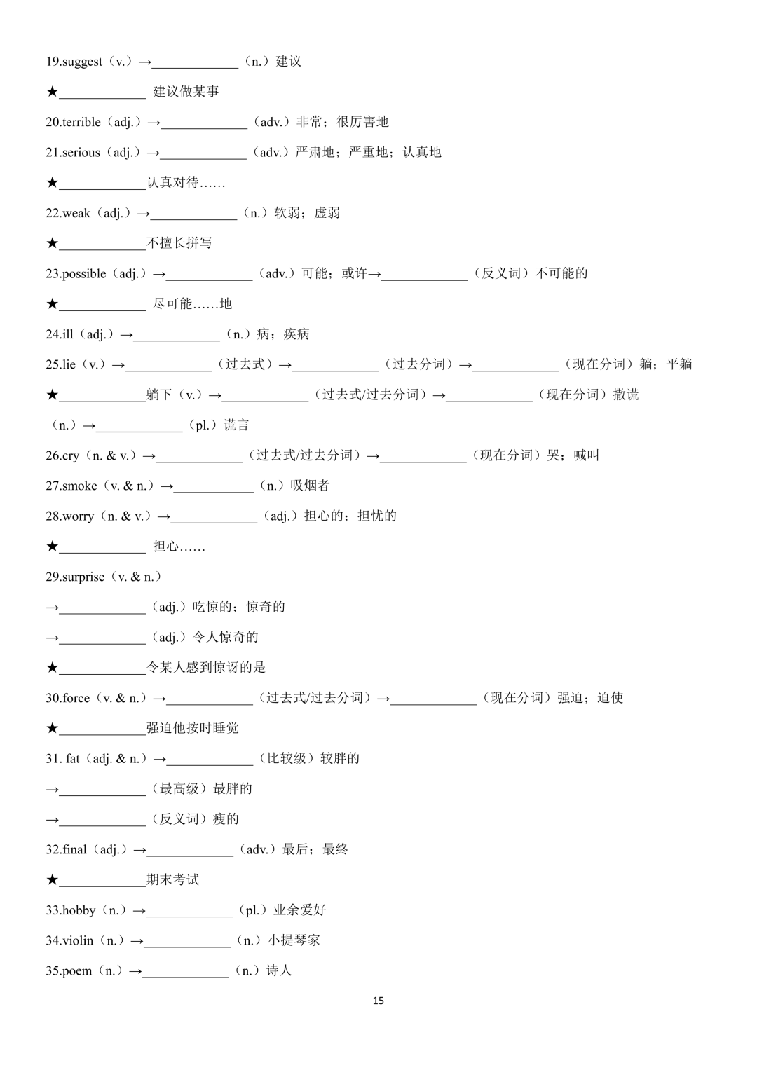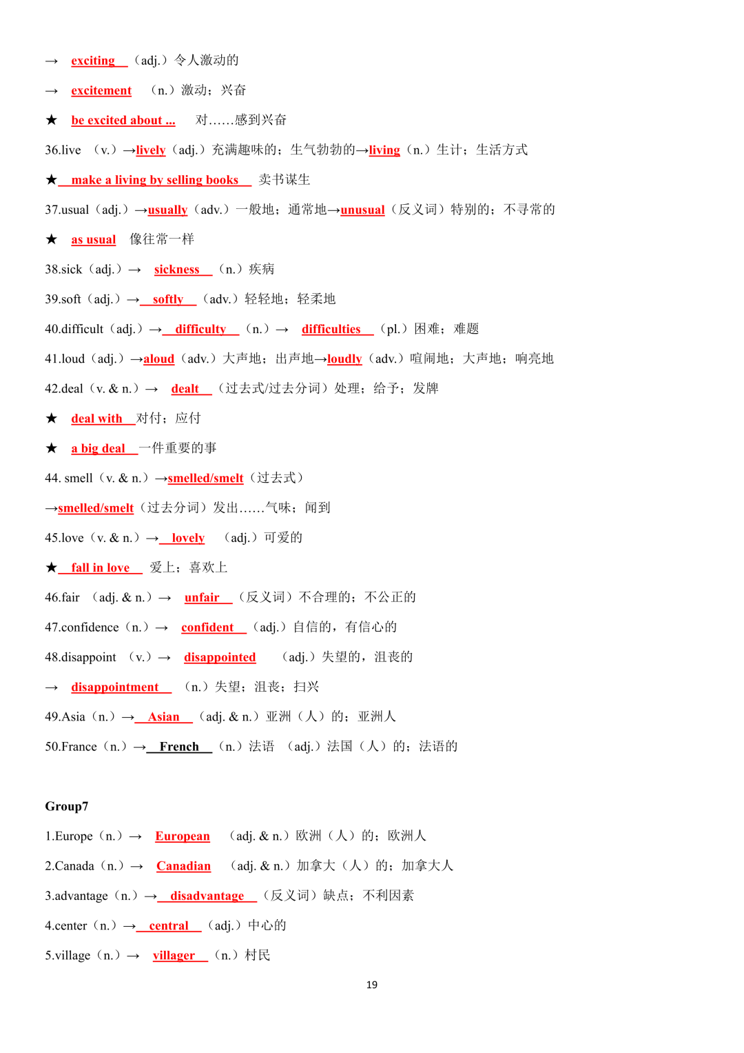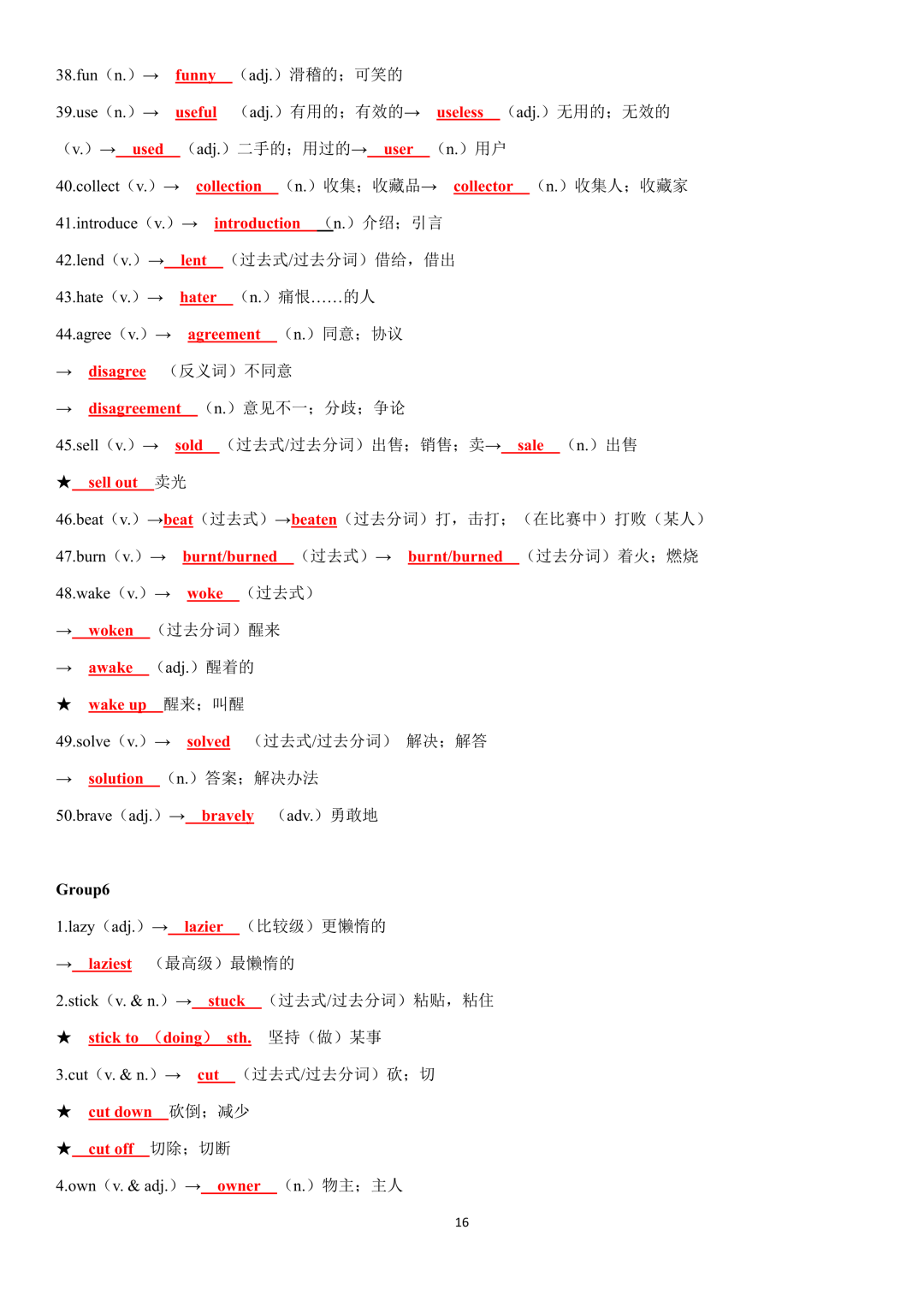 词性转换自测默写一共28页,下面是背诵答案