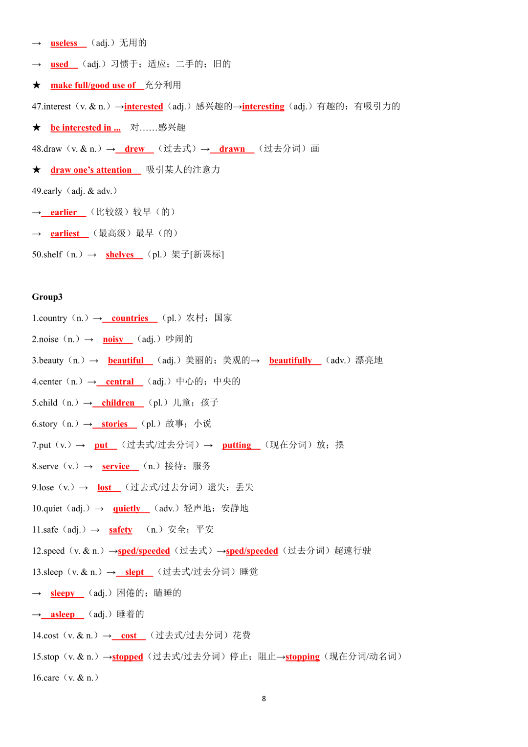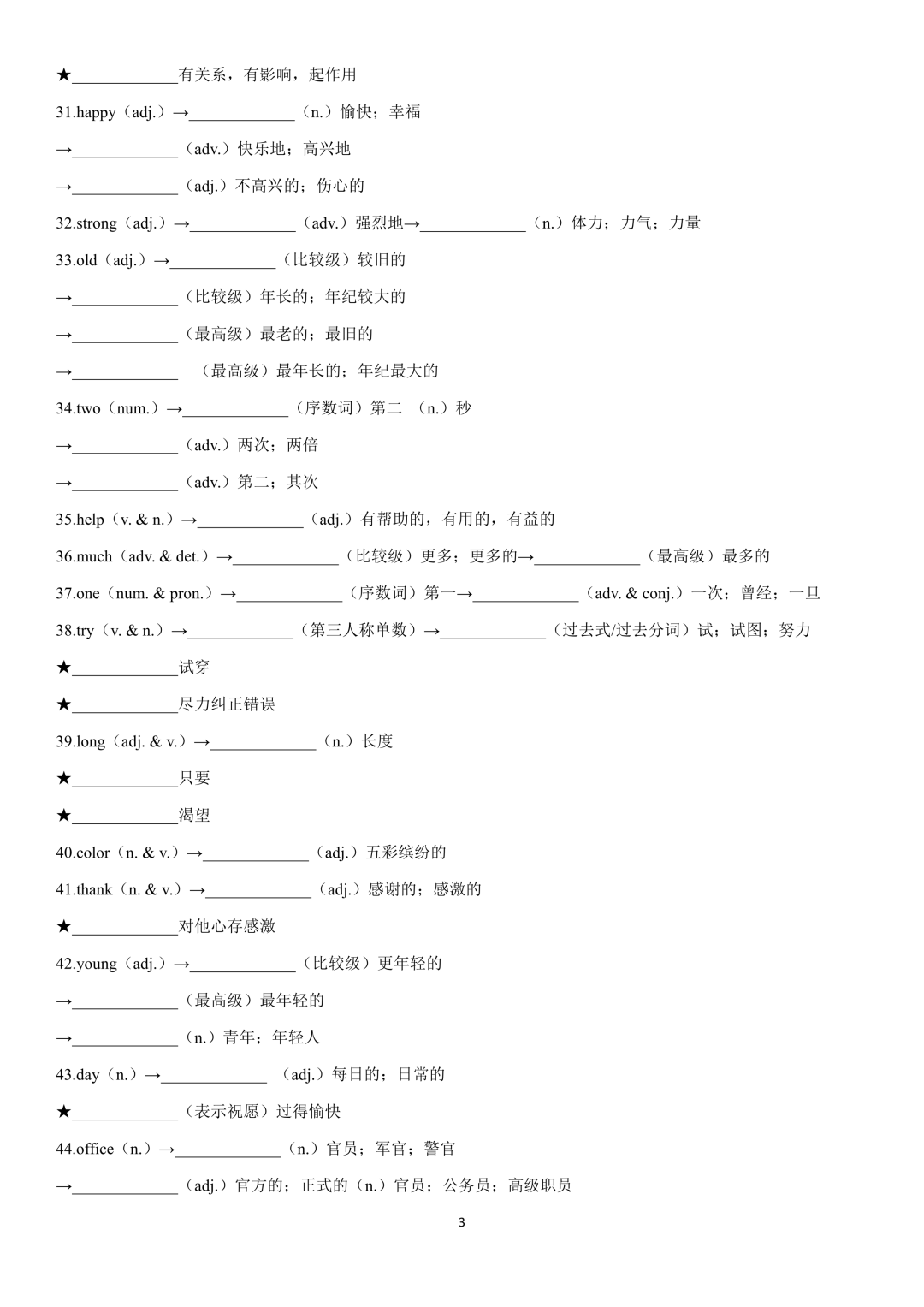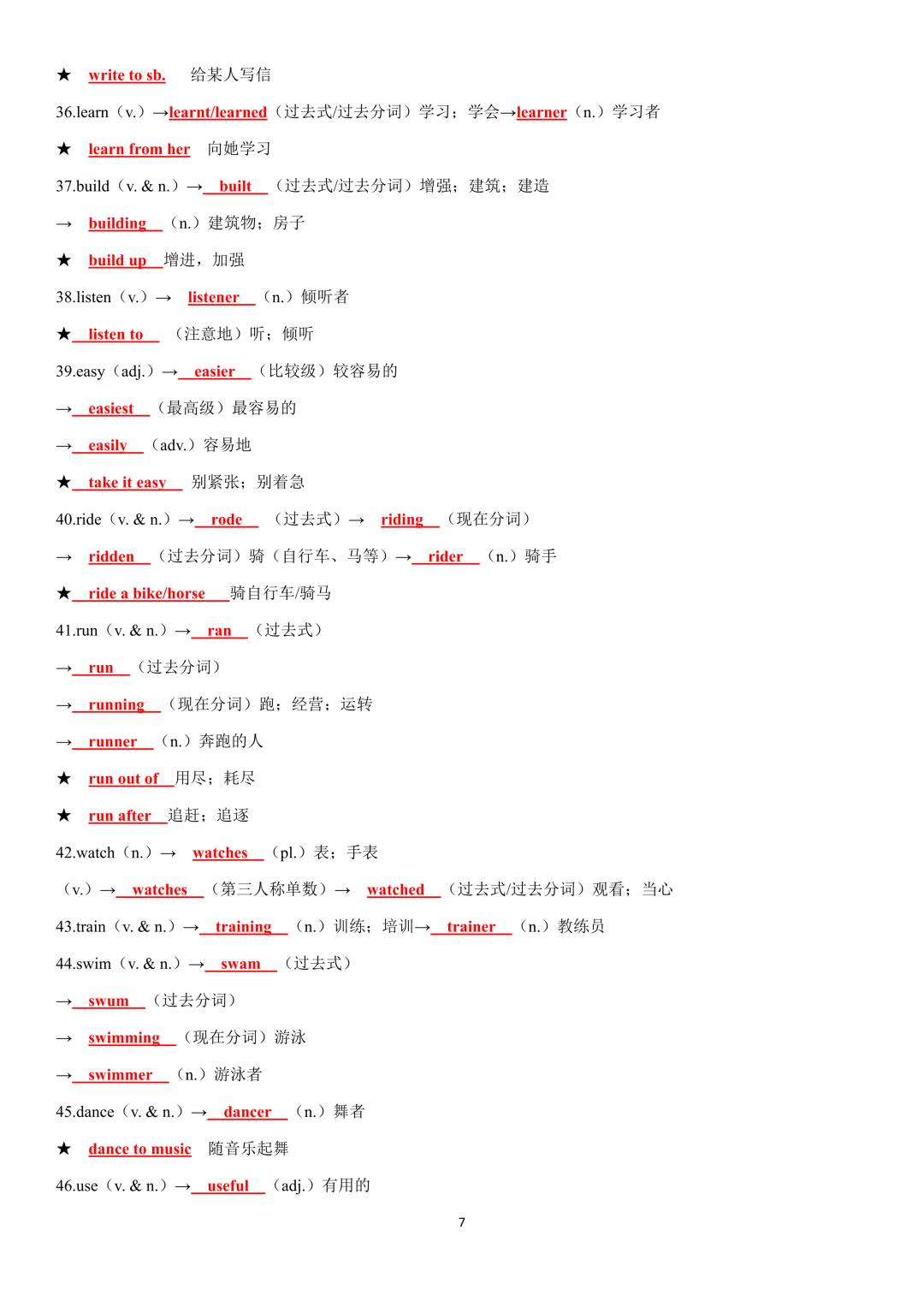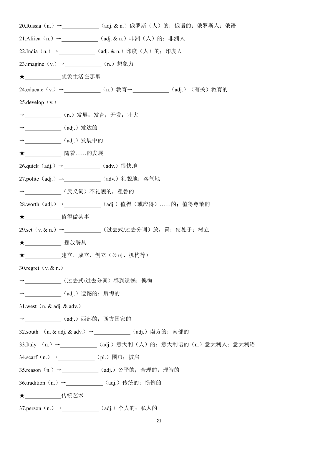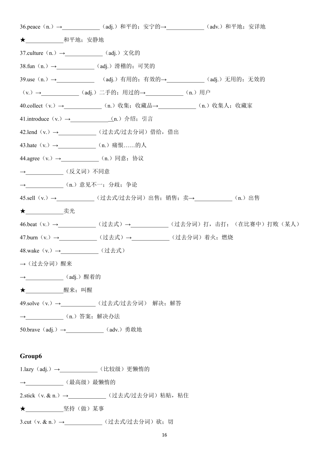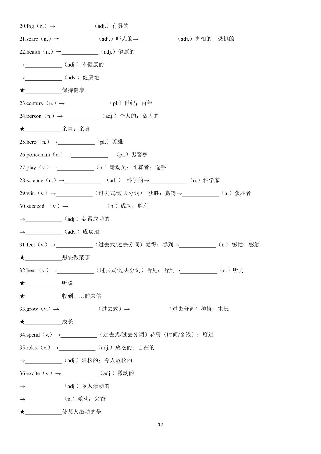 词性转换自测默写一共28页,下面是背诵答案