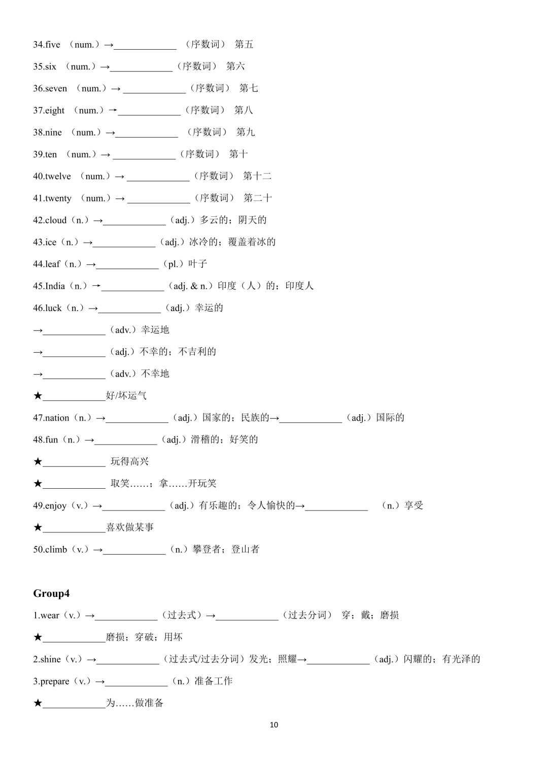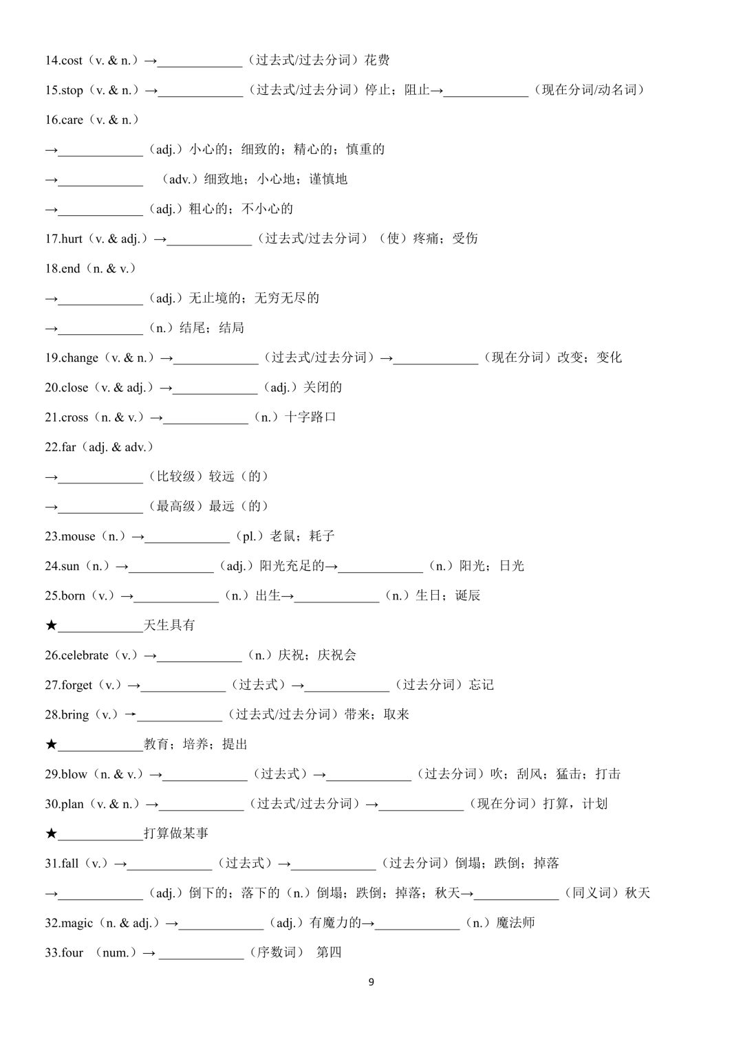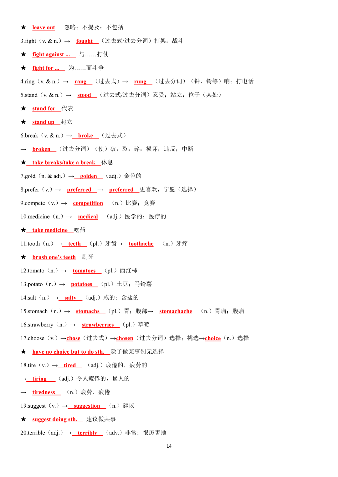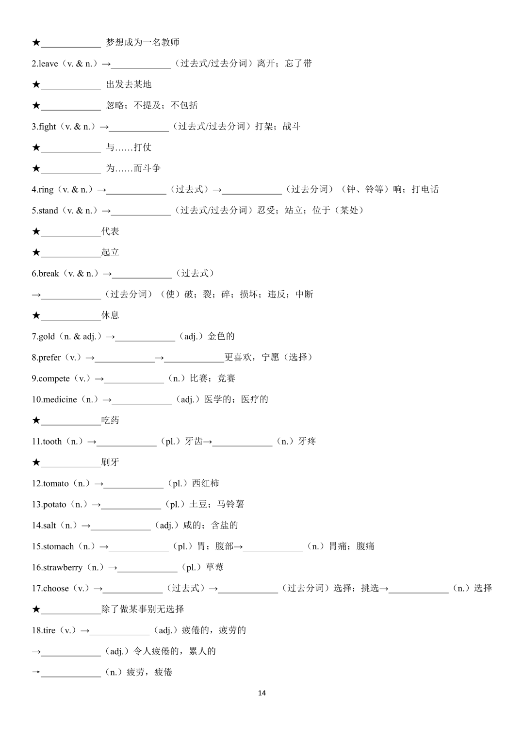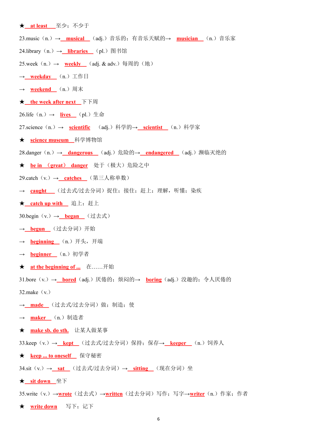 词性转换自测默写一共28页,下面是背诵答案