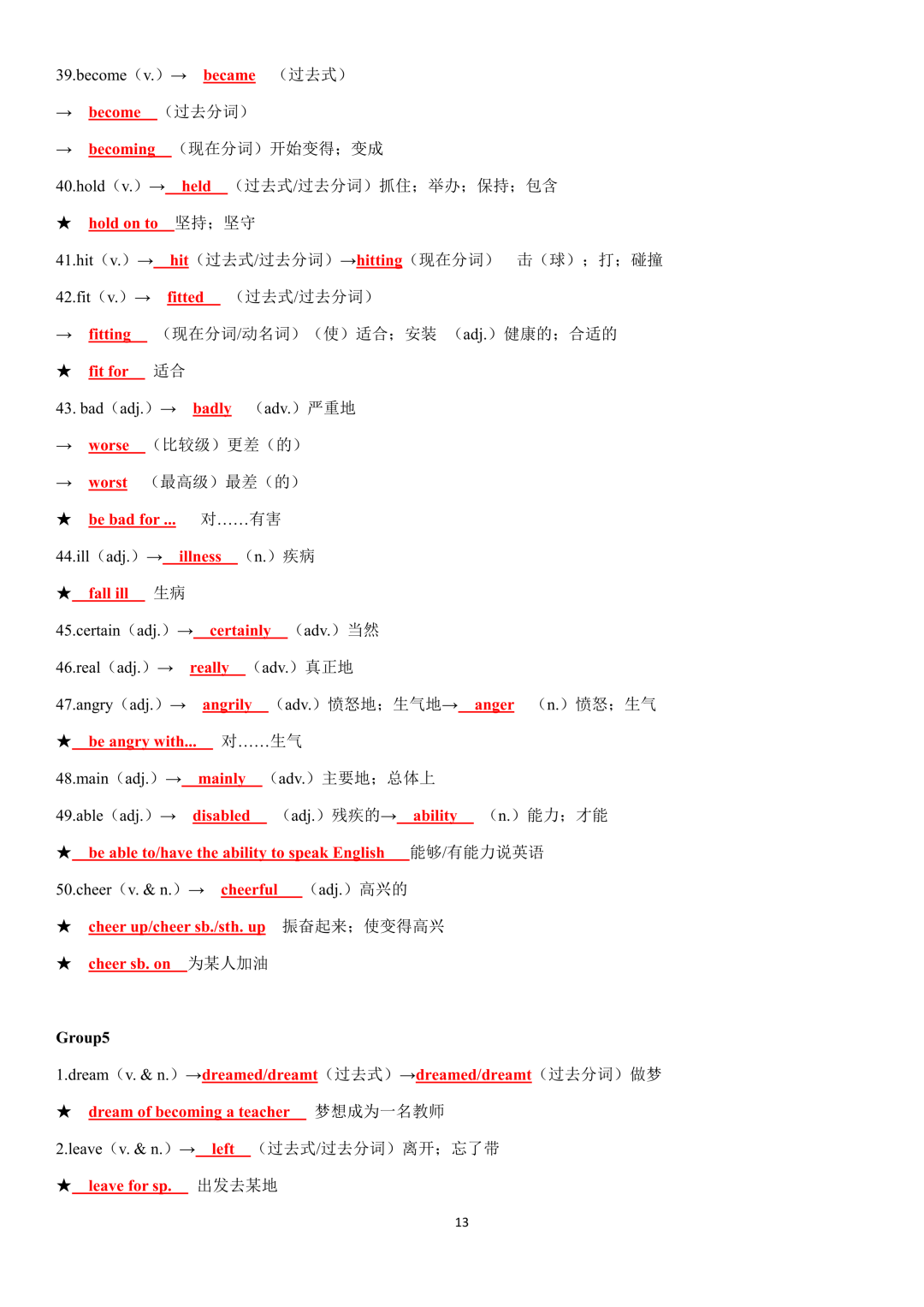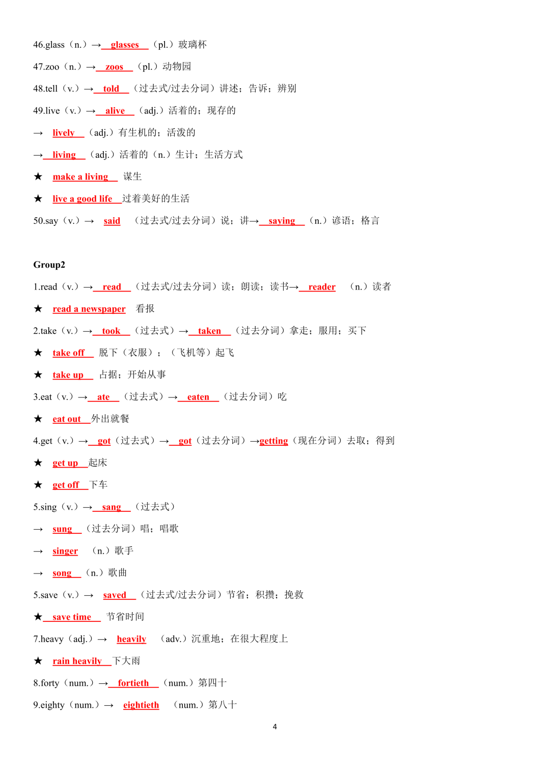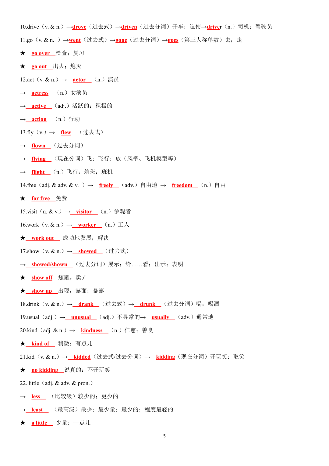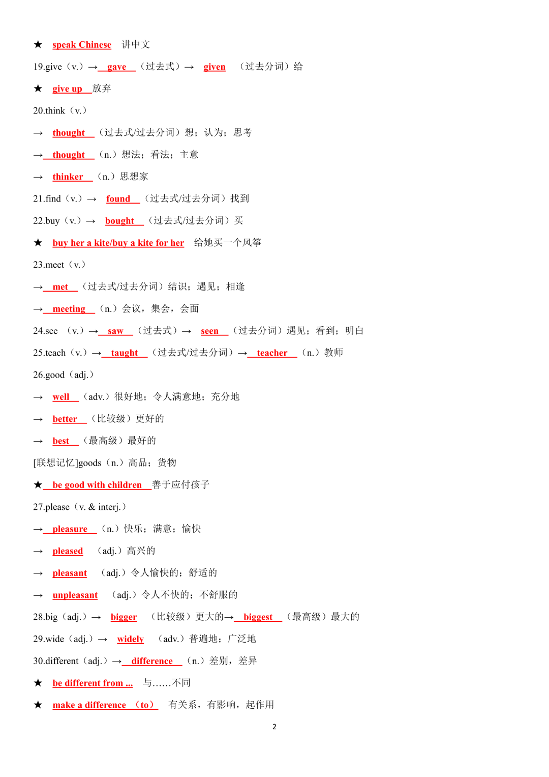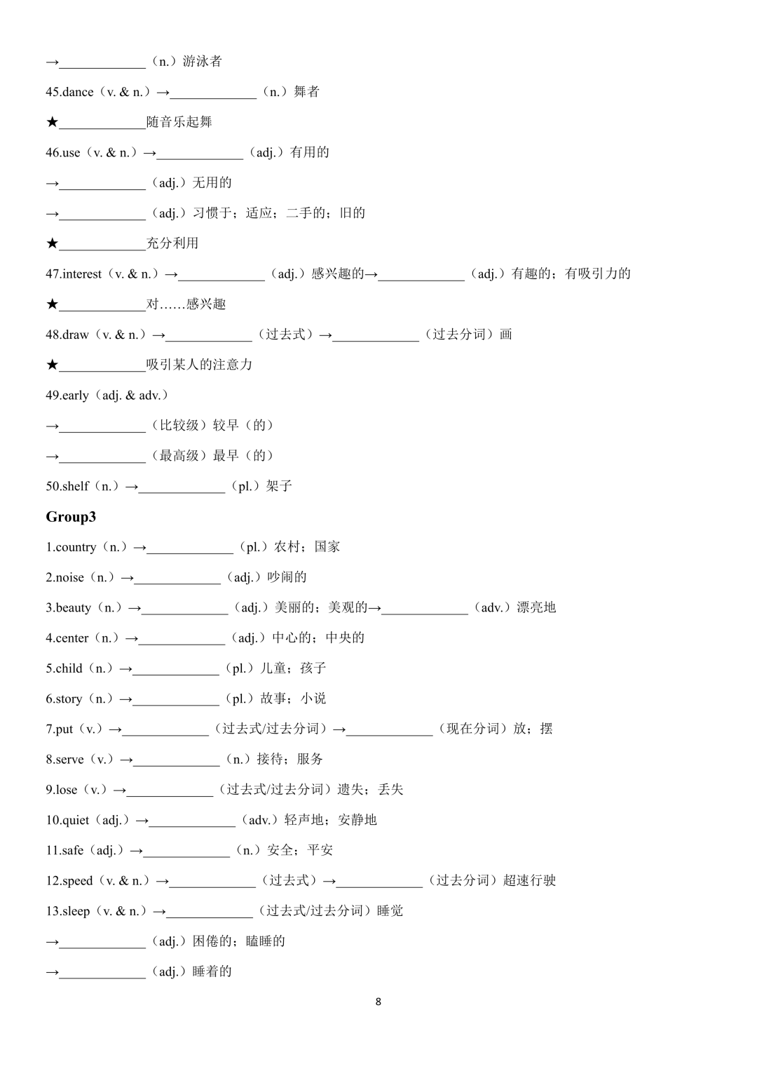 词性转换自测默写一共28页,下面是背诵答案