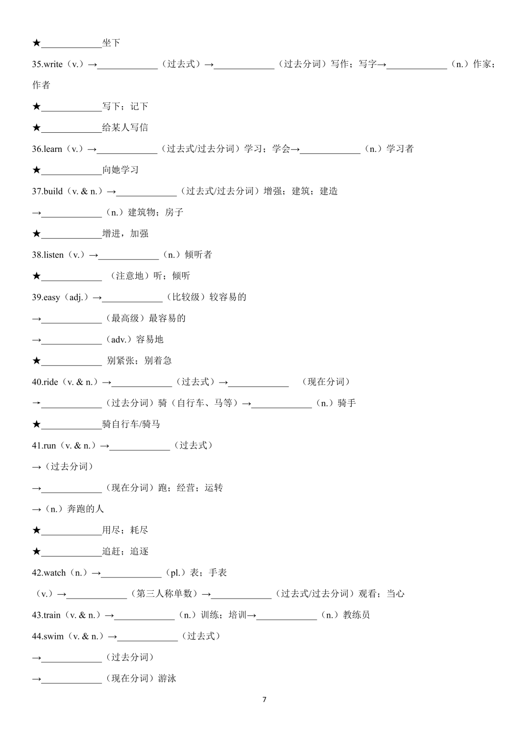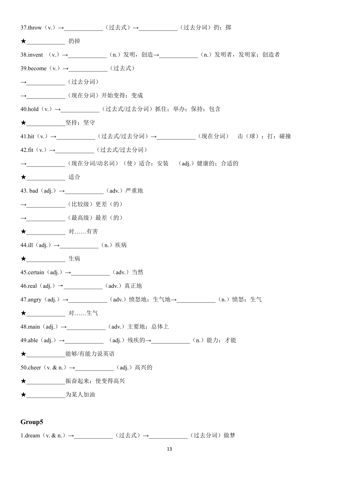 中考英语高频重点单词词性转换(默写版+背诵版)