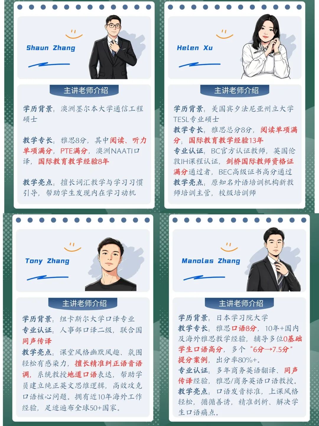 雅思老师的实力,直接决定了你能少走多少弯路。我们的主讲团队,是真正经过层层筛选的 “顶配阵容”: